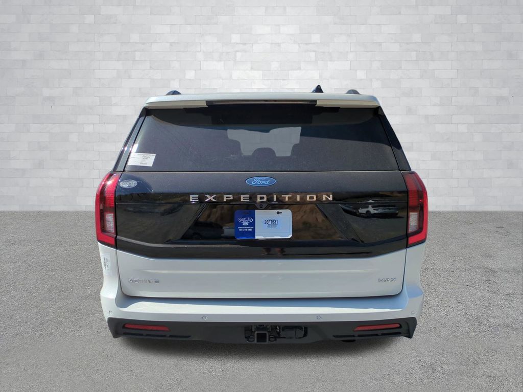 2026 Star White Metallic Tri-Coat 2026 Ford Expedition Max Active RWD EcoBoost 3.5L V6 GTDi DOHC 24V Twin Turbocharged Ford Connectivity Package (1-Year Included), 3.31 Axle Ratio, 3rd row seats: split-bench, 4-Wheel Disc Brakes, 6 Speakers, ABS brakes, Air Conditioning, Alloy wheels, AM/FM radio: SiriusXM with 360L, Apple CarPlay/Android Auto, Auto High-beam Headlights, Auto-dimming Rear-View mirror, Automatic temperature control, Brake assist, Bumpers: body-color, Cloth Front Captain's Chairs, Compass, Delay-off headlights, Driver door bin, Driver vanity mirror, Dual front impact airbags, Dual front side impact airbags, Electronic Stability Control, Emergency communication system: 911 Assist, Exterior Parking Camera Rear, Ford Digital Experience, Four wheel independent suspension, Front anti-roll bar, Front Bucket Seats, Front Center Armrest, Front dual zone A/C, Front reading lights, Fully automatic headlights, Heated door mirrors, Illuminated entry, Low tire pressure warning, Navigation System, Occupant sensing airbag, Outside temperature display, Overhead airbag, Overhead console, Panic alarm, Passenger door bin, Passenger vanity mirror, Power door mirrors, Power driver seat, Power passenger seat, Power steering, Power windows, Radio data system, Radio: AM/FM Stereo with MP3 Capable, Rear air conditioning, Rear anti-roll bar, Rear reading lights, Rear window defroster, Rear window wiper, Reclining 3rd row seat, Remote keyless entry, Security system, SiriusXM with 360L, Speed control, Speed-sensing steering, Speed-Sensitive Wipers, Split folding rear seat, Spoiler, Steering wheel mounted audio controls, Tachometer, Telescoping steering wheel, Tilt steering wheel, Traction control, Trip computer, Variably intermittent wipers, Voltmeter, and Wheels: 18" x 8.5" Dark Alloy Painted Aluminum Courtesy Ford and Lincoln of Rome 101 Hwy 411 E Rome, Ga 30161 ROMEFORDLINC.COM 706.235.4453.