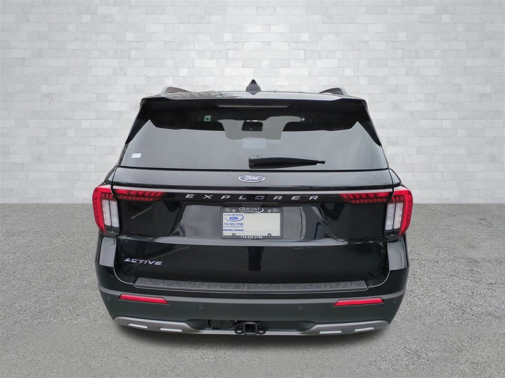 2026 Black Metallic 2026 Ford Explorer Active RWD 2.3L EcoBoost I-4 Active Comfort Package (Front Fascia, Heated ActiveX Seating Material Captain's Chairs, Heated Steering Wheel, Remote Start System, and Second Row Hvac Controls), Equipment Group 200A Standard Package (8 USB Ports, Active Badging, Active Noise Cancellation, AM/FM Stereo, Black Lower Bodyside Cladding with Chrome Accent, Black Roof-Rack Side Rails, Manual-Folding Sideview Mirrors, Power Liftgate, Vinyl-Wrapped Steering Wheel, and Wheels: 18" Sparkle Silver-Painted Aluminum), Ford Connectivity Package (one-Time Purchase - 7 Years), 3rd row seats: bench, 4-Wheel Disc Brakes, 6 Speakers, ABS brakes, Air Conditioning, Alloy wheels, AM/FM radio: SiriusXM with 360L, Apple CarPlay/Android Auto, Auto High-beam Headlights, Automatic temperature control, Brake assist, Bumpers: body-color, Compass, Delay-off headlights, Driver door bin, Driver vanity mirror, Dual front impact airbags, Dual front side impact airbags, Electronic Stability Control, Emergency communication system: 911 Assist, Exterior Parking Camera Rear, Four wheel independent suspension, Front anti-roll bar, Front Bucket Seats, Front Center Armrest, Front dual zone A/C, Front reading lights, Fully automatic headlights, Heated door mirrors, Illuminated entry, Internet access capable: FordPass Connect 5G, Knee airbag, Low tire pressure warning, Navigation System, Occupant sensing airbag, Outside temperature display, Overhead airbag, Overhead console, Panic alarm, Passenger door bin, Passenger vanity mirror, Power driver seat, Power steering, Power windows, Rear air conditioning, Rear anti-roll bar, Rear reading lights, Rear window defroster, Rear window wiper, Remote keyless entry, Security system, Speed control, Speed-sensing steering, Speed-Sensitive Wipers, Split folding rear seat, Spoiler, Steering wheel mounted audio controls, Tachometer, Telescoping steering wheel, Tilt steering wheel, Traction control, Trip computer, Unique Cloth Captain's Chairs, and Variably intermittent wipers Courtesy Ford and Lincoln of Rome 101 Hwy 411 E Rome, Ga 30161 ROMEFORDLINC.COM 706.235.4453.
