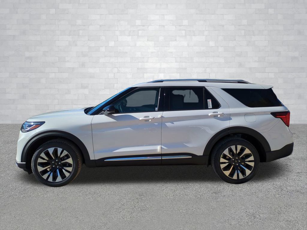 2026 Star White Metallic Tri-Coat 2026 Ford Explorer Platinum 4WD 2.3L EcoBoost I-4 4WD. Equipment Group 600A Standard Package (ActiveX Trimmed Captain's Chairs, Radio: B&O Sound System by Bang & Olufsen with HD, and Wheels: 20" Luster Nickel-Painted Aluminum), Ford Connectivity Package (one-Time Purchase - 7 Years), Lux Leather Package (Platinum Badges on Front Row Seats, Premium Leather Seating Surfaces Captain's Chairs, Quilting and Stitching on Door Panels, and Quilting and Stitching on Seats), 4WD, 14 Speakers, 3rd row seats: bench, 4-Wheel Disc Brakes, ABS brakes, Air Conditioning, Alloy wheels, AM/FM radio: SiriusXM with 360L, Apple CarPlay/Android Auto, Auto High-beam Headlights, Auto-dimming door mirrors, Auto-dimming Rear-View mirror, Automatic temperature control, Brake assist, Bumpers: body-color, Compass, Delay-off headlights, Driver door bin, Driver vanity mirror, Dual front impact airbags, Dual front side impact airbags, Electronic Stability Control, Emergency communication system: 911 Assist, Exterior Parking Camera Rear, Four wheel independent suspension, Front anti-roll bar, Front Bucket Seats, Front Center Armrest, Front dual zone A/C, Front fog lights, Front License Plate Bracket, Front reading lights, Fully automatic headlights, Garage door transmitter, Heated door mirrors, Heated front seats, Heated rear seats, Heated steering wheel, Illuminated entry, Knee airbag, Leather steering wheel, Low tire pressure warning, Memory seat, Navigation System, Occupant sensing airbag, Outside temperature display, Overhead airbag, Overhead console, Panic alarm, Panoramic Fixed Glass Roof with Power Shade, Passenger door bin, Passenger vanity mirror, Power door mirrors, Power driver seat, Power Liftgate, Power passenger seat, Power steering, Power windows, Radio data system, Rain sensing wipers, Rear air conditioning, Rear anti-roll bar, Rear reading lights, Rear window defroster, Rear window wiper, Remote keyless entry, Security system, SiriusXM with 360L (3-Year Plan), Speed control, Speed-sensing steering, Speed-Sensitive Wipers, Split folding rear seat, Spoiler, Steering wheel mounted audio controls, Tachometer, Telescoping steering wheel, Tilt steering wheel, Traction control, Trip computer, Turn signal indicator mirrors, Variably intermittent wipers, Ventilated front seats, and Wheels: : 21" Bright Machined Aluminum w/Tarnish Dark Pockets Courtesy Ford and Lincoln of Rome 101 Hwy 411 E Rome, Ga 30161 ROMEFORDLINC.COM 706.235.4453.