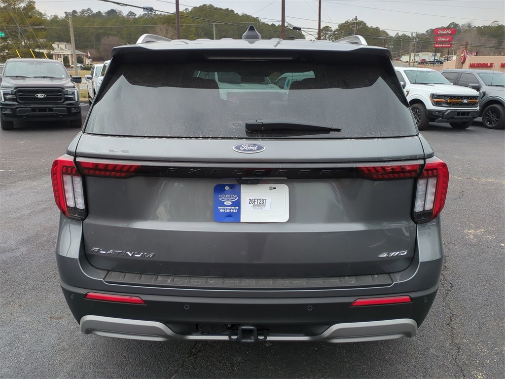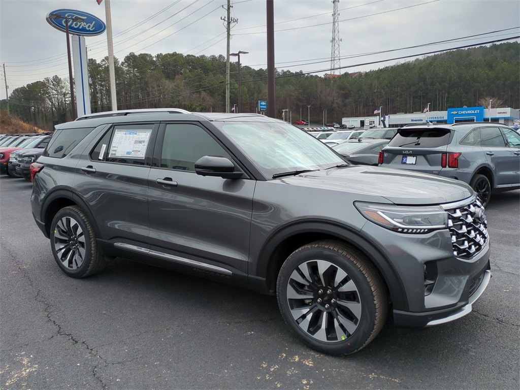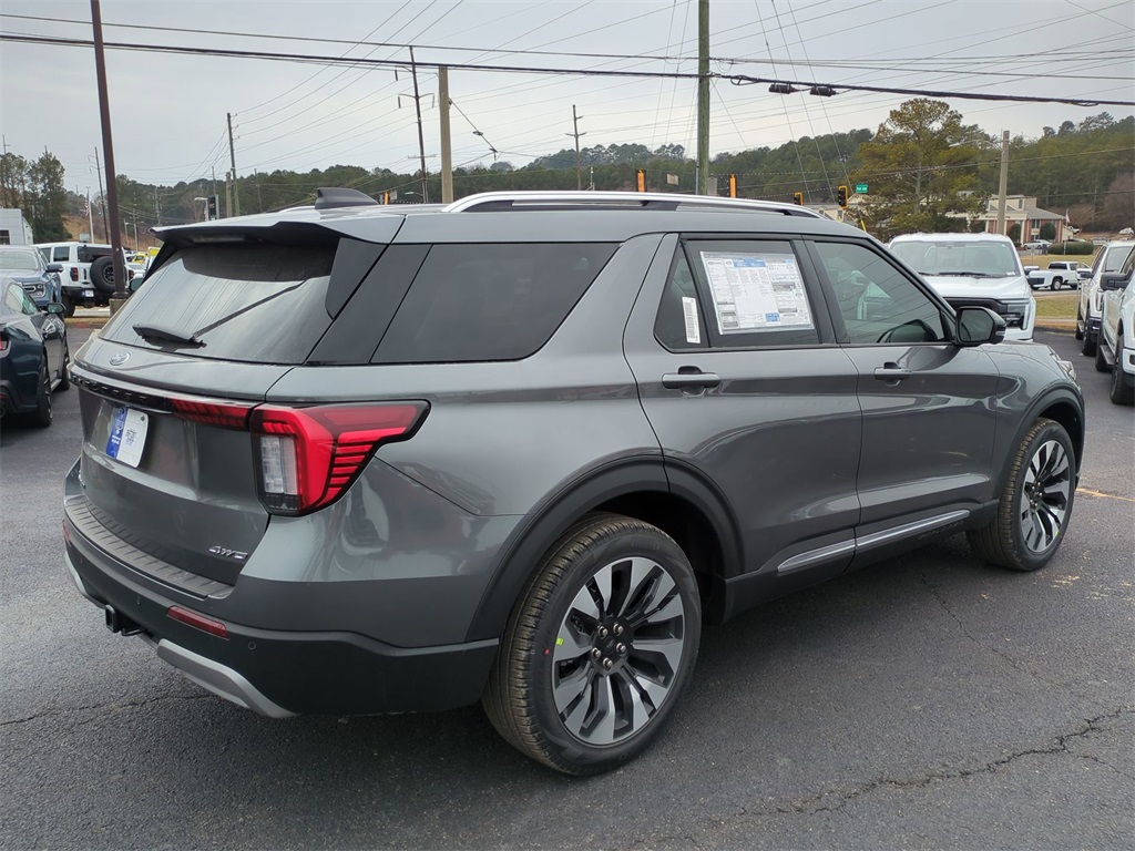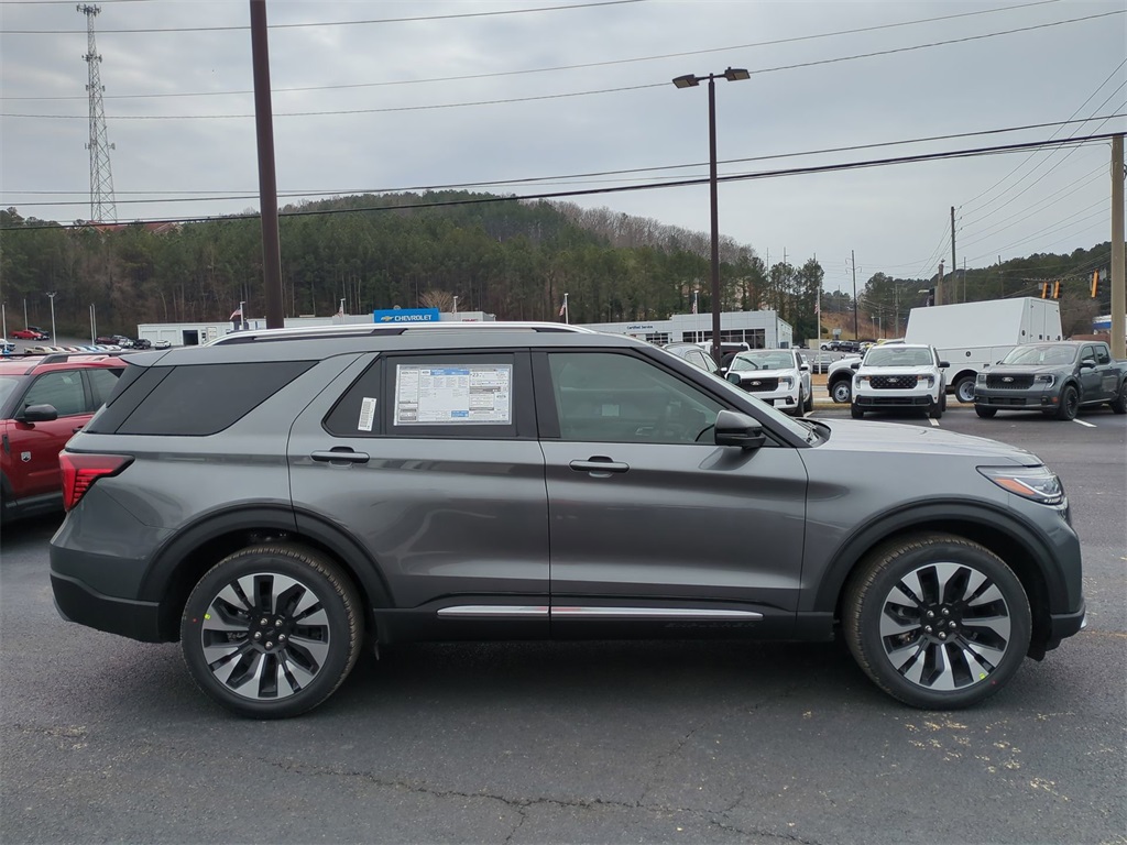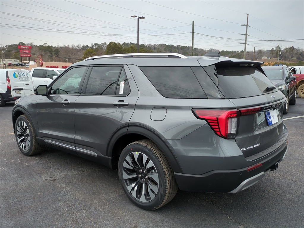 2026 Carbonized Gray Metallic 2026 Ford Explorer Platinum 4WD 2.3L EcoBoost I-4 4WD. 4WD, 14 Speakers, 3rd row seats: bench, 4-Wheel Disc Brakes, ABS brakes, ActiveX Trimmed Captain's Chairs, Air Conditioning, Alloy wheels, AM/FM radio: SiriusXM with 360L, Apple CarPlay/Android Auto, Auto High-beam Headlights, Auto-dimming door mirrors, Auto-dimming Rear-View mirror, Automatic temperature control, Brake assist, Bumpers: body-color, Compass, Delay-off headlights, Driver door bin, Driver vanity mirror, Dual front impact airbags, Dual front side impact airbags, Electronic Stability Control, Emergency communication system: 911 Assist, Exterior Parking Camera Rear, Four wheel independent suspension, Front anti-roll bar, Front Bucket Seats, Front Center Armrest, Front dual zone A/C, Front fog lights, Front reading lights, Fully automatic headlights, Garage door transmitter, Heated door mirrors, Heated front seats, Heated rear seats, Heated steering wheel, Illuminated entry, Knee airbag, Leather steering wheel, Low tire pressure warning, Memory seat, Navigation System, Occupant sensing airbag, Outside temperature display, Overhead airbag, Overhead console, Panic alarm, Passenger door bin, Passenger vanity mirror, Power door mirrors, Power driver seat, Power Liftgate, Power passenger seat, Power steering, Power windows, Radio data system, Radio: B&O Sound System by Bang & Olufsen with HD, Rain sensing wipers, Rear air conditioning, Rear anti-roll bar, Rear reading lights, Rear window defroster, Rear window wiper, Remote keyless entry, Security system, Speed control, Speed-sensing steering, Speed-Sensitive Wipers, Split folding rear seat, Spoiler, Steering wheel mounted audio controls, Tachometer, Telescoping steering wheel, Tilt steering wheel, Traction control, Trip computer, Turn signal indicator mirrors, Variably intermittent wipers, Ventilated front seats, and Wheels: 20" Luster Nickel-Painted Aluminum Courtesy Ford and Lincoln of Rome 101 Hwy 411 E Rome, Ga 30161 ROMEFORDLINC.COM 706.235.4453.