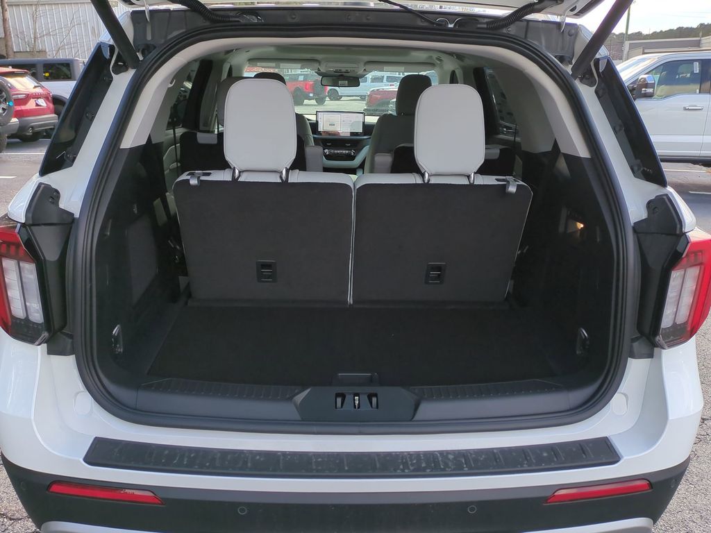 2026 Star White Metallic Tri-Coat 2026 Ford Explorer Platinum 4WD 2.3L EcoBoost I-4 4WD. 4WD, 14 Speakers, 3rd row seats: bench, 4-Wheel Disc Brakes, ABS brakes, ActiveX Trimmed Captain's Chairs, Air Conditioning, Alloy wheels, AM/FM radio: SiriusXM with 360L, Apple CarPlay/Android Auto, Auto High-beam Headlights, Auto-dimming door mirrors, Auto-dimming Rear-View mirror, Automatic temperature control, Brake assist, Bumpers: body-color, Compass, Delay-off headlights, Driver door bin, Driver vanity mirror, Dual front impact airbags, Dual front side impact airbags, Electronic Stability Control, Emergency communication system: 911 Assist, Exterior Parking Camera Rear, Four wheel independent suspension, Front anti-roll bar, Front Bucket Seats, Front Center Armrest, Front dual zone A/C, Front fog lights, Front reading lights, Fully automatic headlights, Garage door transmitter, Heated door mirrors, Heated front seats, Heated rear seats, Heated steering wheel, Illuminated entry, Knee airbag, Leather steering wheel, Low tire pressure warning, Memory seat, Navigation System, Occupant sensing airbag, Outside temperature display, Overhead airbag, Overhead console, Panic alarm, Passenger door bin, Passenger vanity mirror, Power door mirrors, Power driver seat, Power Liftgate, Power passenger seat, Power steering, Power windows, Radio data system, Radio: B&O Sound System by Bang & Olufsen with HD, Rain sensing wipers, Rear air conditioning, Rear anti-roll bar, Rear reading lights, Rear window defroster, Rear window wiper, Remote keyless entry, Security system, Speed control, Speed-sensing steering, Speed-Sensitive Wipers, Split folding rear seat, Spoiler, Steering wheel mounted audio controls, Tachometer, Telescoping steering wheel, Tilt steering wheel, Traction control, Trip computer, Turn signal indicator mirrors, Variably intermittent wipers, Ventilated front seats, and Wheels: 20" Luster Nickel-Painted Aluminum Courtesy Ford and Lincoln of Rome 101 Hwy 411 E Rome, Ga 30161 ROMEFORDLINC.COM 706.235.4453.