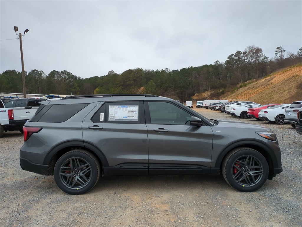 2026 Carbonized Gray Metallic 2026 Ford Explorer ST-Line RWD 2.3L EcoBoost I-4 10 Speakers, 3rd row seats: bench, 4-Wheel Disc Brakes, ABS brakes, Air Conditioning, Alloy wheels, AM/FM radio: SiriusXM with 360L, Apple CarPlay/Android Auto, Auto High-beam Headlights, Automatic temperature control, Brake assist, Bumpers: body-color, Compass, Delay-off headlights, Driver door bin, Driver vanity mirror, Dual front impact airbags, Dual front side impact airbags, Electronic Stability Control, Emergency communication system: 911 Assist, Exterior Parking Camera Rear, Four wheel independent suspension, Front anti-roll bar, Front Bucket Seats, Front Center Armrest, Front dual zone A/C, Front fog lights, Front reading lights, Fully automatic headlights, Garage door transmitter, Heated door mirrors, Heated front seats, Heated steering wheel, Heated Unique Cloth Captain's Chairs, Illuminated entry, Internet access capable: FordPass Connect 5G, Knee airbag, Leather steering wheel, Low tire pressure warning, Navigation System, Occupant sensing airbag, Outside temperature display, Overhead airbag, Overhead console, Panic alarm, Passenger door bin, Passenger vanity mirror, Power door mirrors, Power driver seat, Power Liftgate, Power passenger seat, Power steering, Power windows, Radio: B&O Sound System by Bang and Olufsen, Rear air conditioning, Rear anti-roll bar, Rear reading lights, Rear window defroster, Rear window wiper, Remote keyless entry, Security system, Speed control, Speed-sensing steering, Speed-Sensitive Wipers, Split folding rear seat, Spoiler, Steering wheel mounted audio controls, Tachometer, Telescoping steering wheel, Tilt steering wheel, Traction control, Trip computer, Variably intermittent wipers, and Wheels: 20" Ebony-Painted Machined Aluminum Courtesy Ford and Lincoln of Rome 101 Hwy 411 E Rome, Ga 30161 ROMEFORDLINC.COM 706.235.4453.