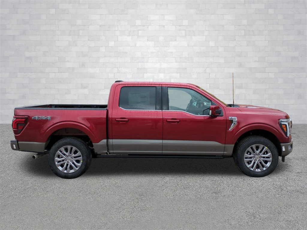 2026 Ruby Red Metallic Tinted Clearcoat 2026 Ford F-150 King Ranch 4WD 3.5L V6 EcoBoost 4WD. Ford Connectivity Package (1-Year Included), Internet access capable: 5G Modem - Ford Connectivity Package, 4WD, 4-Wheel Disc Brakes, 8 Speakers, ABS brakes, Adjustable pedals, Air Conditioning, Alloy wheels, AM/FM radio: SiriusXM with 360L, Auto High-beam Headlights, Auto tilt-away steering wheel, Auto-dimming door mirrors, Auto-dimming Rear-View mirror, Automatic temperature control, Brake assist, Chrome wheels, Compass, Delay-off headlights, Driver door bin, Driver vanity mirror, Dual front impact airbags, Dual front side impact airbags, Electronic Locking with 3.55 Axle Ratio, Electronic Stability Control, Emergency communication system: SYNC 4 911 Assist, Front anti-roll bar, Front Bucket Seats, Front Center Armrest, Front dual zone A/C, Front fog lights, Front reading lights, Front wheel independent suspension, Fully automatic headlights, Garage door transmitter, Genuine wood dashboard insert, Heated door mirrors, Heated front seats, Heated rear seats, Heated steering wheel, Illuminated entry, Leather steering wheel, Low tire pressure warning, Memory seat, Navigation system: Connected Navigation, Occupant sensing airbag, Outside temperature display, Overhead airbag, Overhead console, Panic alarm, Passenger door bin, Passenger vanity mirror, Pedal memory, Power door mirrors, Power driver seat, Power passenger seat, Power steering, Power windows, Radio data system, Radio: B&O Sound System by Bang and Olufsen, Rain sensing wipers, Rear reading lights, Rear seat center armrest, Rear step bumper, Rear window defroster, Remote keyless entry, Security system, Speed control, Split folding rear seat, Steering wheel memory, Steering wheel mounted audio controls, SYNC 4 with Enhanced Voice Recognition, Tachometer, Telescoping steering wheel, Tilt steering wheel, Traction control, Trip computer, Turn signal indicator mirrors, Variably intermittent wipers, Ventilated front seats, and Wheels: 20" Chrome-Like PVD Courtesy Ford and Lincoln of Rome 101 Hwy 411 E Rome, Ga 30161 ROMEFORDLINC.COM 706.235.4453.