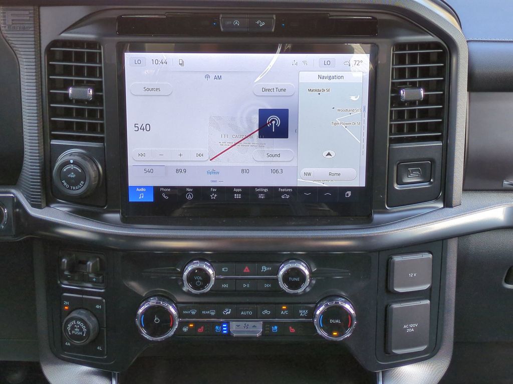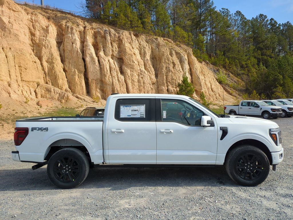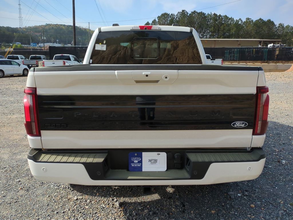 2026 Star White Metallic Tri-Coat 2026 Ford F-150 Platinum 4WD 3.5L V6 EcoBoost 4WD. Ford Connectivity Package (1-Year Included), GVWR: 7,400 lbs Payload Package, Internet access capable: 5G Modem - Ford Connectivity Package, 4WD, 4-Wheel Disc Brakes, 8 Speakers, ABS brakes, Adjustable pedals, Air Conditioning, Alloy wheels, AM/FM radio: SiriusXM with 360L, Auto High-beam Headlights, Auto tilt-away steering wheel, Auto-dimming door mirrors, Auto-dimming Rear-View mirror, Automatic temperature control, Brake assist, Bumpers: body-color, Compass, Delay-off headlights, Driver door bin, Driver vanity mirror, Dual front impact airbags, Dual front side impact airbags, Electronic Locking with 3.55 Axle Ratio, Electronic Stability Control, Emergency communication system: SYNC 4 911 Assist, Front anti-roll bar, Front Bucket Seats, Front Center Armrest, Front dual zone A/C, Front fog lights, Front reading lights, Front wheel independent suspension, Fully automatic headlights, Garage door transmitter, Heated door mirrors, Heated front seats, Heated rear seats, Heated steering wheel, Illuminated entry, Leather steering wheel, Low tire pressure warning, Memory seat, Navigation system: Connected Navigation, Occupant sensing airbag, Outside temperature display, Overhead airbag, Overhead console, Panic alarm, Passenger door bin, Passenger vanity mirror, Pedal memory, Power door mirrors, Power driver seat, Power passenger seat, Power steering, Power windows, Radio data system, Radio: B&O Sound System by Bang and Olufsen, Rain sensing wipers, Rear reading lights, Rear seat center armrest, Rear step bumper, Rear window defroster, Remote keyless entry, Security system, Speed control, Split folding rear seat, Steering wheel memory, Steering wheel mounted audio controls, SYNC 4 with Enhanced Voice Recognition, Tachometer, Telescoping steering wheel, Tilt steering wheel, Traction control, Trip computer, Turn signal indicator mirrors, Unique Multi-Contour Leather Bucket Seats, Variably intermittent wipers, Ventilated front seats, and Wheels: 20" Painted Gloss Ebony Black Courtesy Ford and Lincoln of Rome 101 Hwy 411 E Rome, Ga 30161 ROMEFORDLINC.COM 706.235.4453.