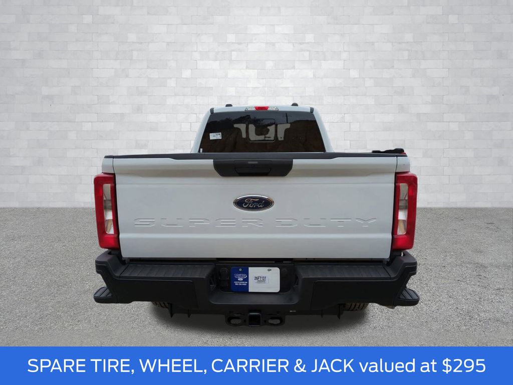 2026 Oxford White 2026 Ford F-250SD XL 4WD 6.8L V8 4WD. Ford Connectivity Package (1-Year Included), Internet access capable: 5G Modem - Ford Connectivity Package, 4WD, 3.73 Axle Ratio, 4-Wheel Disc Brakes, 6 Speakers, ABS brakes, Air Conditioning, AM/FM radio, Brake assist, Cloth 40/20/40 Split Bench Seat, Compass, Delay-off headlights, Dual front impact airbags, Dual front side impact airbags, Electronic Stability Control, Emergency communication system: SYNC 4 911 Assist, Exterior Parking Camera Rear, Front anti-roll bar, Front Center Armrest w/Storage, Front reading lights, Fully automatic headlights, Heated door mirrors, Illuminated entry, Low tire pressure warning, Outside temperature display, Overhead airbag, Overhead console, Panic alarm, Passenger cancellable airbag, Passenger vanity mirror, Power door mirrors, Power steering, Power windows, Privacy Glass, Rear step bumper, Remote keyless entry, Security system, Speed control, Split folding rear seat, Steering wheel mounted audio controls, SYNC 4, Tachometer, Telescoping steering wheel, Tilt steering wheel, Traction control, Trip computer, Turn signal indicator mirrors, and Variably intermittent wipers Courtesy Ford and Lincoln of Rome 101 Hwy 411 E Rome, Ga 30161 ROMEFORDLINC.COM 706.235.4453.