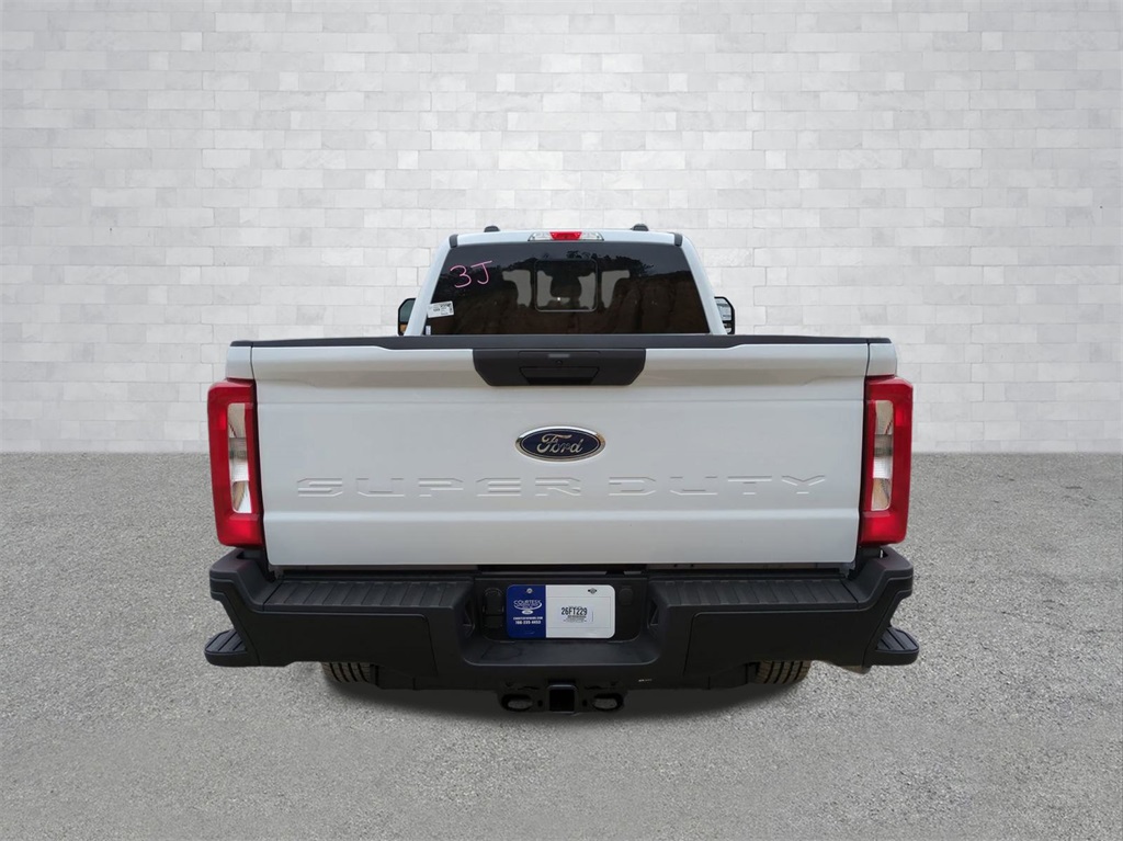 2026 Oxford White 2026 Ford F-250SD XL 4WD 6.8L V8 4WD. Ford Connectivity Package (1-Year Included), GVWR: 10,000 lb Payload Package, Internet access capable: 5G Modem - Ford Connectivity Package, 4WD, 3.73 Axle Ratio, 4-Wheel Disc Brakes, 6 Speakers, ABS brakes, Air Conditioning, AM/FM radio, AM/FM Stereo w/MP3 Player, Brake assist, Cloth 40/20/40 Split Bench Seat, Compass, Delay-off headlights, Dual front impact airbags, Dual front side impact airbags, Electronic Stability Control, Emergency communication system: SYNC 4 911 Assist, Exterior Parking Camera Rear, Front anti-roll bar, Front Center Armrest w/Storage, Front reading lights, Fully automatic headlights, Heated door mirrors, Illuminated entry, Low tire pressure warning, Outside temperature display, Overhead airbag, Overhead console, Panic alarm, Passenger cancellable airbag, Passenger vanity mirror, Power door mirrors, Power steering, Power windows, Privacy Glass, Rear step bumper, Remote keyless entry, Security system, Speed control, Split folding rear seat, Steering wheel mounted audio controls, SYNC 4, Tachometer, Telescoping steering wheel, Tilt steering wheel, Traction control, Trip computer, Turn signal indicator mirrors, and Variably intermittent wipers Courtesy Ford and Lincoln of Rome 101 Hwy 411 E Rome, Ga 30161 ROMEFORDLINC.COM 706.235.4453.