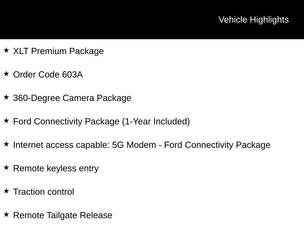 - Internet access capable: 5G Modem - Ford Connectivity Package