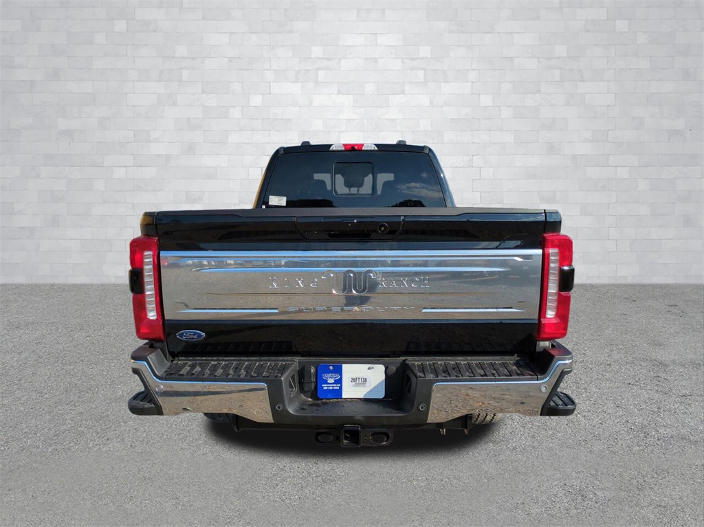 2026 Agate Black Metallic 2026 Ford F-350SD King Ranch 4WD 6.7L High Output Power Stroke V8 Diesel 4WD, ABS brakes, Alloy wheels, Compass, Electronic Stability Control, Front dual zone A/C, Heated door mirrors, Heated front seats, Heated rear seats, Illuminated entry, Low tire pressure warning, Remote keyless entry, Traction control. Ford Connectivity Package (1-Year Included), Internet access capable: 5G Modem - Ford Connectivity Package, 4WD, ABS brakes, Alloy wheels, Compass, Electronic Stability Control, Front dual zone A/C, Heated door mirrors, Heated front seats, Heated rear seats, Illuminated entry, Low tire pressure warning, Remote keyless entry, Traction control, 14 Speakers, 4-Wheel Disc Brakes, Adjustable pedals, Air Conditioning, AM/FM radio: SiriusXM with 360L, Auto High-beam Headlights, Auto tilt-away steering wheel, Auto-dimming Rear-View mirror, Automatic temperature control, Brake assist, Delay-off headlights, Driver door bin, Driver vanity mirror, Dual front impact airbags, Dual front side impact airbags, Emergency communication system: SYNC 4 911 Assist, Flow-Through Console, Front anti-roll bar, Front Bucket Seats, Front Center Armrest, Front fog lights, Front reading lights, Fully automatic headlights, Garage door transmitter, Heads-Up Display, Heated steering wheel, Leather steering wheel, Memory seat, Navigation system: Connected Navigation, Outside temperature display, Overhead airbag, Overhead console, Panic alarm, Passenger door bin, Passenger vanity mirror, Pedal memory, Power door mirrors, Power driver seat, Power passenger seat, Power steering, Power windows, Radio: B&O Unleashed Sound System by Bang & Olufsen, Rain sensing wipers, Rear reading lights, Rear seat center armrest, Rear step bumper, Rear window defroster, Security system, Speed control, Split folding rear seat, Steering wheel memory, Steering wheel mounted A/C controls, Steering wheel mounted audio controls, Tachometer, Telescoping steering wheel, Tilt steering wheel, Trip computer, Turn signal indicator mirrors, Unique King Ranch Leather 40/Console/40 Seats, Variably intermittent wipers, Ventilated front seats, and Wheels: 20" Bright Machined Aluminum Courtesy Ford and Lincoln of Rome 101 Hwy 411 E Rome, Ga 30161 ROMEFORDLINC.COM 706.235.4453.