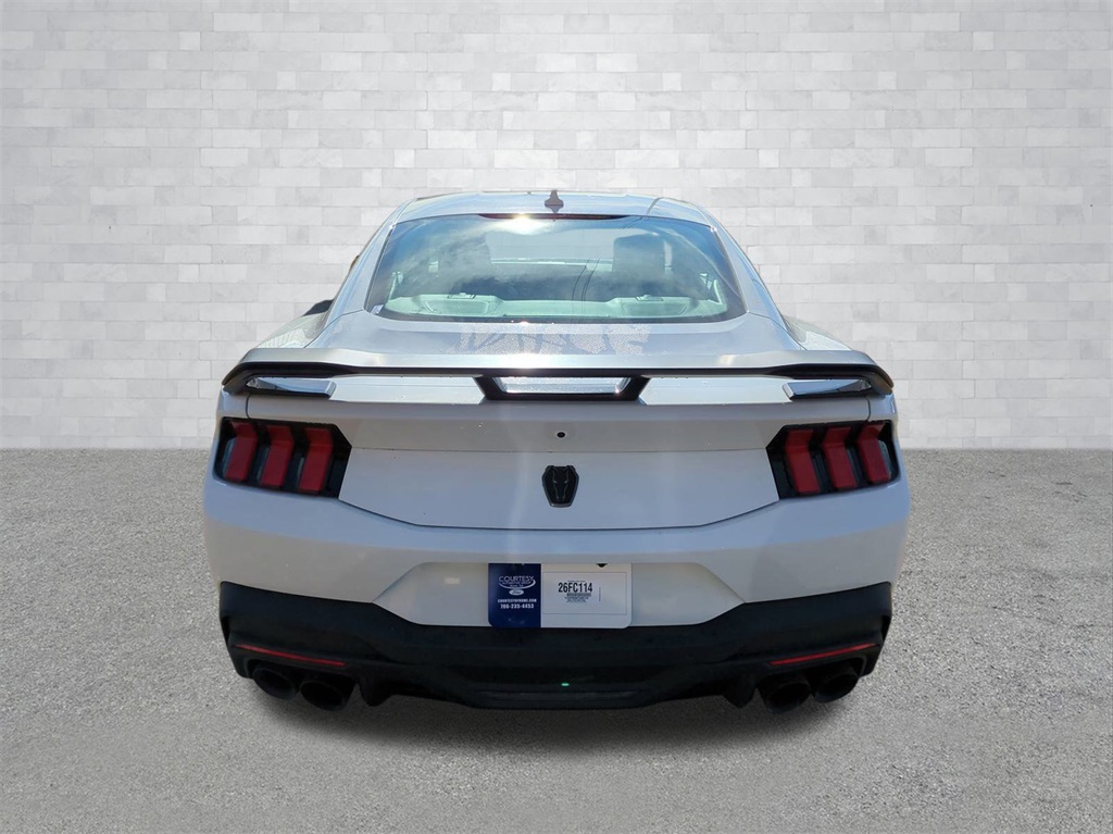 2026 Oxford White 2026 Ford Mustang Dark Horse RWD 5.0L V8 DOHC 32V 12" LCD Productivity Touchscreen, 12.4" LCD Digital Driver Cluster, 4G WiFi Hotspot Telematics, Auto LED Headlights, Backup Camera, Brembo Brakes w/ Performance Lingings, Mustang Dark Horse, 2D Coupe, 5.0L V8 DOHC 32V, RWD, Active Anti-Theft System, Aluminum Foot Pedals, Anti-Theft Package, Approach Detection, B&O Sound System by Bang & Olufsen, Cloth/Vinyl Climate-Controlled Bucket Seats, Driver Seat Memory w/3 Settings, Equipment Group 700A Deluxe Package, Locking Center Console, Navigation system: Connected Navigation, Rain sensing wipers, Wheel Locking Kit, Wheels: 19" x 9.5" Fr & 19" x 10" Rr Aluminum. Anti-Theft Package (Active Anti-Theft System, Locking Center Console, and Wheel Locking Kit), Equipment Group 700A Deluxe Package (Aluminum Foot Pedals, Approach Detection, Cloth/Vinyl Climate-Controlled Bucket Seats, and Driver Seat Memory w/3 Settings), Mustang Dark Horse, 2D Coupe, 5.0L V8 DOHC 32V, RWD, B&O Sound System by Bang & Olufsen, Navigation system: Connected Navigation, Rain sensing wipers, Wheels: 19" x 9.5" Fr & 19" x 10" Rr Aluminum, 12 Speakers, 4-Wheel Disc Brakes, ABS brakes, Adaptive suspension, Air Conditioning, Alloy wheels, AM/FM radio: SiriusXM with 360L, AM/FM Stereo, Auto High-beam Headlights, Auto-dimming Rear-View mirror, Automatic temperature control, Brake assist, Bumpers: body-color, Cloth/Vinyl Heated Bucket Seats, Compass, Delay-off headlights, Driver door bin, Driver vanity mirror, Dual front impact airbags, Dual front side impact airbags, Electronic Stability Control, Emergency communication system: 911 Assist, Exterior Parking Camera Rear, Four wheel independent suspension, Front anti-roll bar, Front Bucket Seats, Front Center Armrest, Front dual zone A/C, Front reading lights, Fully automatic headlights, HD Radio, Heated front seats, Heated steering wheel, Illuminated entry, Knee airbag, Low tire pressure warning, Occupant sensing airbag, Outside temperature display, Overhead airbag, Overhead console, Panic alarm, Passenger door bin, Passenger vanity mirror, Power door mirrors, Power driver seat, Power passenger seat, Power steering, Power windows, Radio data system, Rear anti-roll bar, Rear Parking Sensors, Rear window defroster, Remote keyless entry, SiriusXM w/360L, Speed control, Speed-sensing steering, Speed-Sensitive Wipers, Split folding rear seat, Spoiler, Sport steering wheel, Steering wheel mounted audio controls, SYNC 4, Tachometer, Telescoping steering wheel, Tilt steering wheel, Traction control, Trip computer, and Voltmeter Courtesy Ford and Lincoln of Rome 101 Hwy 411 E Rome, Ga 30161 ROMEFORDLINC.COM 706.235.4453.