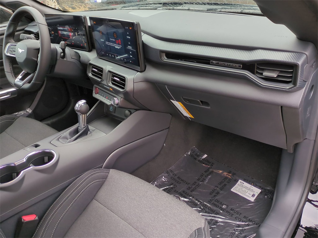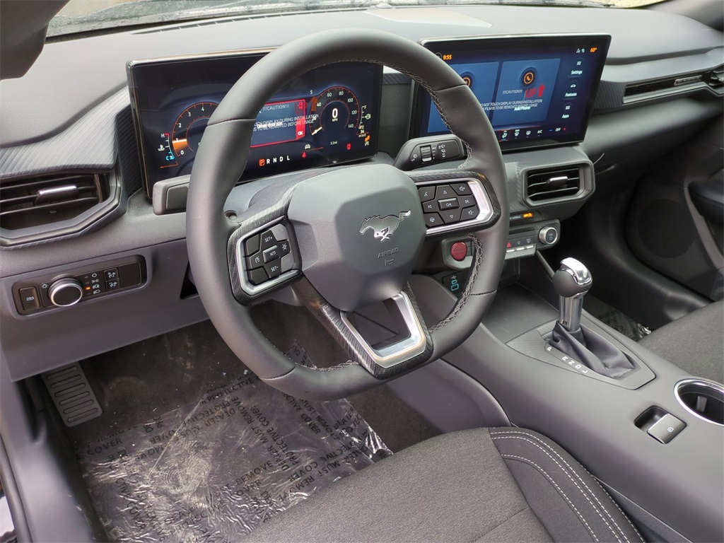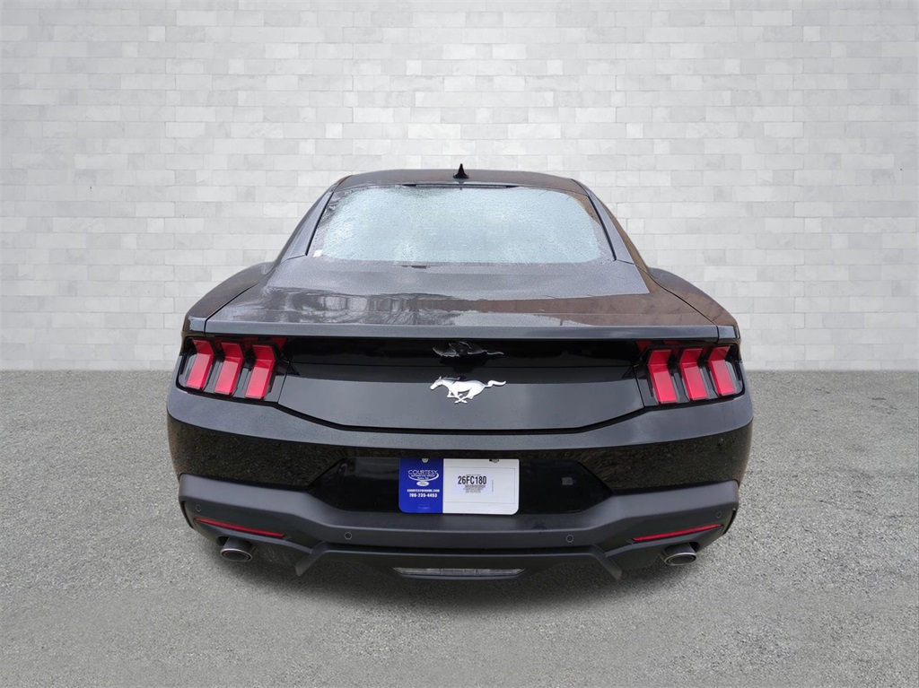 2026 Shadow Black 2026 Ford Mustang EcoBoost RWD EcoBoost 2.3L I4 GTDi DOHC Turbocharged VCT ABS brakes, Alloy wheels, Compass, Electronic Stability Control, Front dual zone A/C, Illuminated entry, Low tire pressure warning, Remote keyless entry, Traction control. ABS brakes, Alloy wheels, Compass, Electronic Stability Control, Front dual zone A/C, Illuminated entry, Low tire pressure warning, Remote keyless entry, Traction control, 4-Wheel Disc Brakes, 6 Speakers, Air Conditioning, AM/FM radio, AM/FM Stereo, Auto High-beam Headlights, Automatic temperature control, Brake assist, Bumpers: body-color, Cloth Bucket Seats, Delay-off headlights, Driver door bin, Driver vanity mirror, Dual front impact airbags, Dual front side impact airbags, Emergency communication system: 911 Assist, Exterior Parking Camera Rear, Four wheel independent suspension, Front anti-roll bar, Front Bucket Seats, Front Center Armrest, Front reading lights, Fully automatic headlights, Knee airbag, Leather Shift Knob, Occupant sensing airbag, Outside temperature display, Overhead airbag, Overhead console, Panic alarm, Passenger door bin, Passenger vanity mirror, Power door mirrors, Power steering, Power windows, Radio data system, Rain sensing wipers, Rear anti-roll bar, Rear Parking Sensors, Rear window defroster, Speed control, Speed-sensing steering, Speed-Sensitive Wipers, Split folding rear seat, Sport steering wheel, Steering wheel mounted audio controls, SYNC 4, Tachometer, Telescoping steering wheel, Tilt steering wheel, Trip computer, Variably intermittent wipers, and Voltmeter Courtesy Ford and Lincoln of Rome 101 Hwy 411 E Rome, Ga 30161 ROMEFORDLINC.COM 706.235.4453.