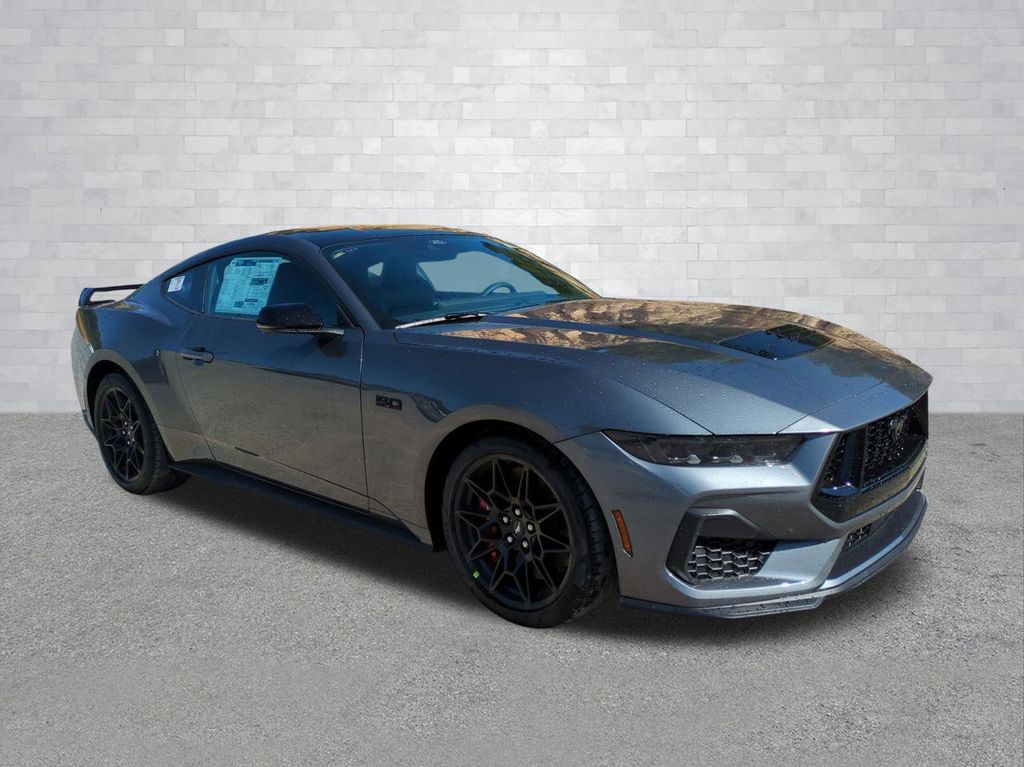2026 Carbonized Gray Metallic 2026 Ford Mustang GT Premium RWD 5.0L V8 Ti-VCT ABS brakes, Alloy wheels, Compass, Electronic Stability Control, Front dual zone A/C, Heated front seats, Illuminated entry, Low tire pressure warning, Remote keyless entry, Traction control. ABS brakes, Alloy wheels, Compass, Electronic Stability Control, Front dual zone A/C, Heated front seats, Illuminated entry, Low tire pressure warning, Remote keyless entry, Traction control, 4-Wheel Disc Brakes, 9 Speakers, ActiveX Trimmed Bucket Seats, Air Conditioning, AM/FM radio: SiriusXM with 360L, AM/FM Stereo, Auto High-beam Headlights, Auto-dimming Rear-View mirror, Automatic temperature control, Brake assist, Bumpers: body-color, Climate Controlled Heated/Cooled Front Seats, Delay-off headlights, Driver door bin, Driver vanity mirror, Dual front impact airbags, Dual front side impact airbags, Emergency communication system: 911 Assist, Exterior Parking Camera Rear, Four wheel independent suspension, Front anti-roll bar, Front Bucket Seats, Front Center Armrest, Front reading lights, Fully automatic headlights, HD Radio, Heated steering wheel, Knee airbag, Leather Shift Knob, Leather steering wheel, Occupant sensing airbag, Outside temperature display, Overhead airbag, Overhead console, Panic alarm, Passenger door bin, Passenger vanity mirror, Power door mirrors, Power driver seat, Power passenger seat, Power steering, Power windows, Radio data system, Rain sensing wipers, Rear anti-roll bar, Rear Parking Sensors, Rear window defroster, SiriusXM with 360L, Speed control, Speed-sensing steering, Speed-Sensitive Wipers, Split folding rear seat, Sport steering wheel, Steering wheel mounted audio controls, SYNC 4, Tachometer, Telescoping steering wheel, Tilt steering wheel, Trip computer, Variably intermittent wipers, Ventilated front seats, Voltmeter, and Wheels: 19" x 8.5" Shadow Silver-Painted Aluminum Courtesy Ford and Lincoln of Rome 101 Hwy 411 E Rome, Ga 30161 ROMEFORDLINC.COM 706.235.4453.