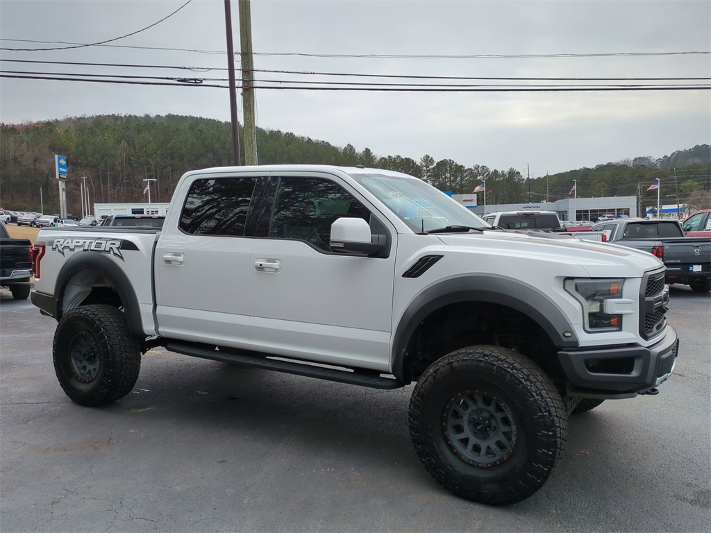 Oxford White 2017 Ford F-150 Raptor 4WD 4WD Raptor 4WD 360-Degree Camera, Adaptive Cruise Control, Backup Camera, Blind Spot Monitoring, BLIS w/ Cross Traffic Alert, Cold Weather Package, Hill Start Assist, Lane Keeping System, Memory Package, Off Road Package, Panoramic Sunroof/Moonroof, Power Mirror Package, Power Package, Premium Audio Package, Premium Sound Package, Pro Trailer Backup Assist, Pro Trailer Hitch Assist, Remote Start, Reverse Brake Assist, Reverse Sensing, Skid Plate Package, Tow Package, Trailer Package, 4D SuperCrew, 3.5L V6, 10-Speed Automatic, 4WD, 10-Way Power Driver & Passenger Seats, 17" Cast Aluminum Wheels, 360 Degree Camera, 4-Wheel Disc Brakes, 4.10 Front Axle w/Torsen Differential, 7 Speakers, 8-Way Power Driver's Seat w/Power Lumbar, ABS brakes, Adaptive Cruise Control w/Collision Mitigation, Advanced Security Pack, AM/FM radio: SiriusXM, Ambient Lighting, Auto High Beam, Auto-dimming Rear-View mirror, BLIS Blind Spot Information System, Brake assist, Carbon Fiber Package, Compass, Delay-off headlights, Dual-Zone Electronic Automatic Temperature Control, Electronic Locking w/4.10 Axle Ratio, Electronic Stability Control, Equipment Group 802A Luxury, Exterior Graphics Package, Exterior Parking Camera Rear, Front fog lights, Front wheel independent suspension, Fully automatic headlights, Heated Leather 40/Console/40 Front Seats, Heated/Cooled Leather 40/Console/40 Front Seats, Hood Graphics Package, Illuminated entry, Inflatable Rear Safety Belts, Integrated Trailer Brake Controller, Intelligent Access w/Push-Button Start, Lane-Keeping System, Leather steering wheel, LED Box Lighting, LED Side-Mirror Spotlights, Low tire pressure warning, Memory System (Seat, Pedal, Exterior Mirror), Navigation System, Outside temperature display, Overhead console, Panic alarm, Power door mirrors, Power driver seat, Power Glass Heated Sideview Mirrors, Power steering, Power Tilt/Telescoping Steering Column w/Memory, Power windows, Power-Adjustable Pedals, Power-Sliding Rear Window, Pro Trailer Backup Assist, Radio data system, Radio: Sony Single CD w/HD & SiriusXM Satellite, Raptor Technology Package, Rear Parking Sensors, Rear step bumper, Remote keyless entry, Remote Start System w/Remote Tailgate Release, Security system, Speed-sensing steering, Split folding rear seat, Spray-In Bedliner (Pre-Installed), Steering wheel mounted audio controls, SYNC, SYNC 3, SYNC Connect, Tailgate Applique, Tailgate Step w/Tailgate Lift Assist, Telescoping steering wheel, Tilt steering wheel, Traction control, Trip computer, Twin Panel Moonroof, Unique Carbon Fiber Shift Knob, Unique Cloth/Leather Trim Seats, Universal Garage Door Opener, Variably intermittent wipers, Voice-Activated Navigation.