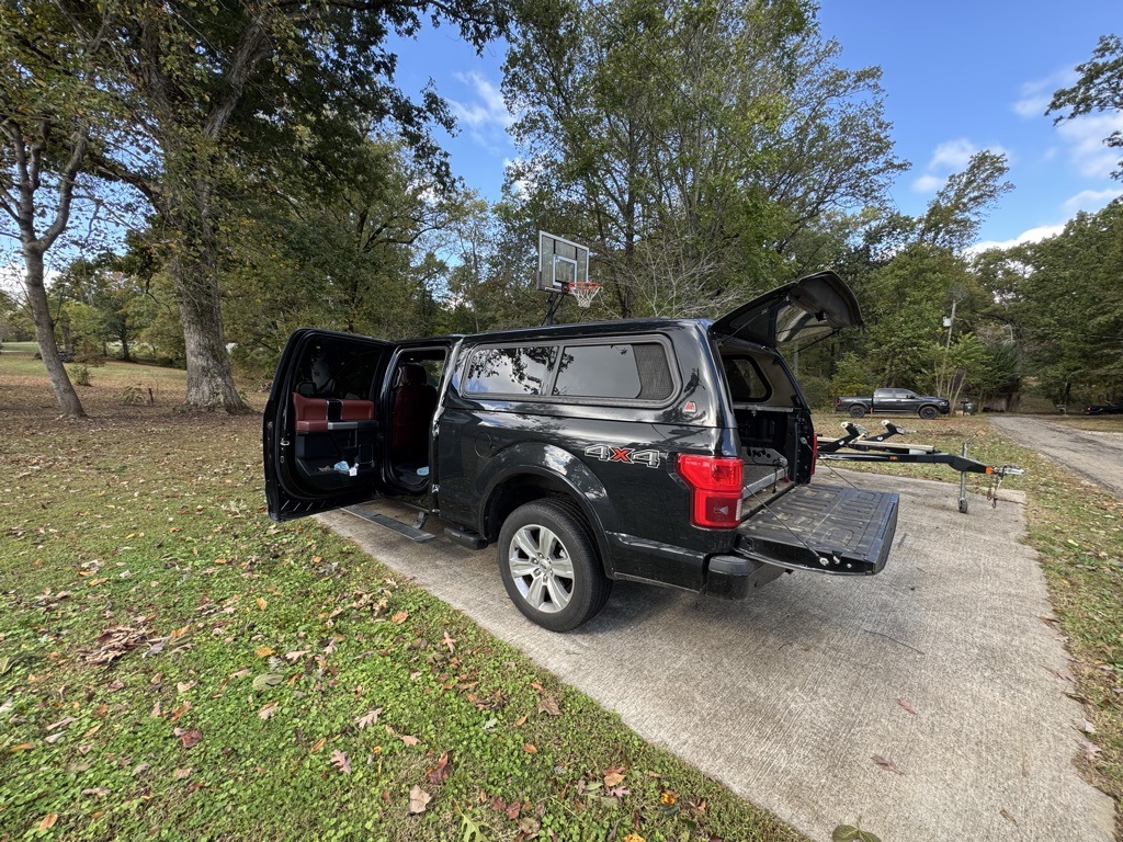 Shadow Black 2018 Ford F-150 Platinum 4WD 4WD Platinum 4WD Active Park Assist, Adaptive Cruise Control, Auto LED Headlights, Backup Camera, Blind Spot Monitoring, BLIS w/ Cross Traffic Alert, Bluetooth w/ Audio Streaming, Cold Weather Package, Lane Keeping System, Leather Seats, LED Foglights, Memory Package, Panoramic Sunroof/Moonroof, Parking Sensors, Power Mirror Package, Power Package, Power Running Boards, Power Sliding Rear Window, Premium Audio Package, Premium Sound Package, Pro Trailer Backup Assist, Pro Trailer Hitch Assist, Push Button Start, Remote Start, Reverse Brake Assist, Reverse Sensing, Tow Package, Trailer Package, 4D SuperCrew, 3.5L V6 EcoBoost, 10-Speed Automatic, 4WD, 10 Speakers, 20" Polished Aluminum Wheels, 4-Wheel Disc Brakes, Active Park Assist, Adaptive Cruise Control, Adjustable pedals, AM/FM radio: SiriusXM, AppLink/Apple CarPlay and Android Auto, Auto High-beam Headlights, Auto tilt-away steering wheel, Auto-dimming door mirrors, Auto-dimming Rear-View mirror, Automatic temperature control, Black Unique Multi-Contour Leather Bucket Seats, Brake assist, Class IV Trailer Hitch Receiver, Compass, Delay-off headlights, Electronic Locking w/3.55 Axle Ratio, Electronic Stability Control, Emergency communication system: SYNC 3 911 Assist, Equipment Group 701A Luxury, Extended Range 36 Gallon Fuel Tank, Exterior Parking Camera Rear, Front Center Armrest, Front dual zone A/C, Front fog lights, Fully automatic headlights, Garage door transmitter, Genuine wood door panel insert, GVWR: 7,050 lbs Payload Package, Heated door mirrors, Heated front seats, Heated rear seats, Heated steering wheel, Higher-Capacity Radiator, Higher-Power Cooling Fans, Illuminated entry, Integrated Trailer Brake Controller, Lane-Keeping System, Low tire pressure warning, Max Trailer Tow Package, Memory seat, Navigation System, Outside temperature display, Overhead console, Panic alarm, Pedal memory, Power door mirrors, Power passenger seat, Pro Trailer Backup Assist, Radio data system, Radio: B&O Play Premium Audio System, Rain sensing wipers, Rear Parking Sensors, Rear seat center armrest, Rear step bumper, Remote keyless entry, Security system, Speed control, Speed-sensing steering, Split folding rear seat, Steering wheel memory, Steering wheel mounted audio controls, SYNC 3, Tailgate Step w/Tailgate Lift Assist, Technology Package, Telescoping steering wheel, Tilt steering wheel, Traction control, Trip computer, Turn signal indicator mirrors, Twin Panel Moonroof, Ventilated front seats, Voice-Activated Touchscreen Navigation System.