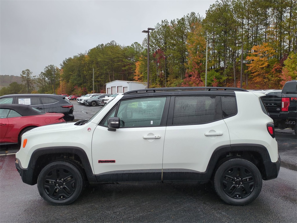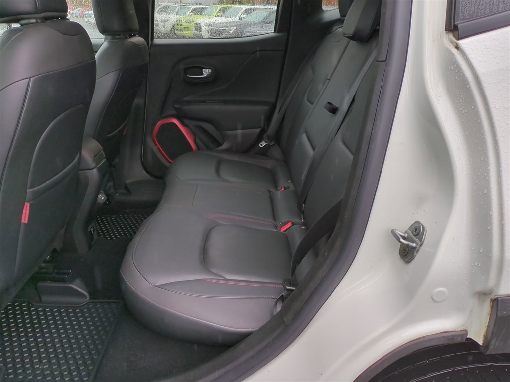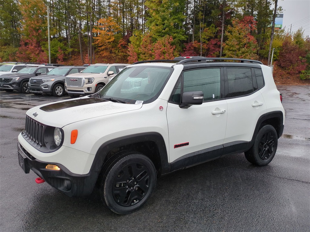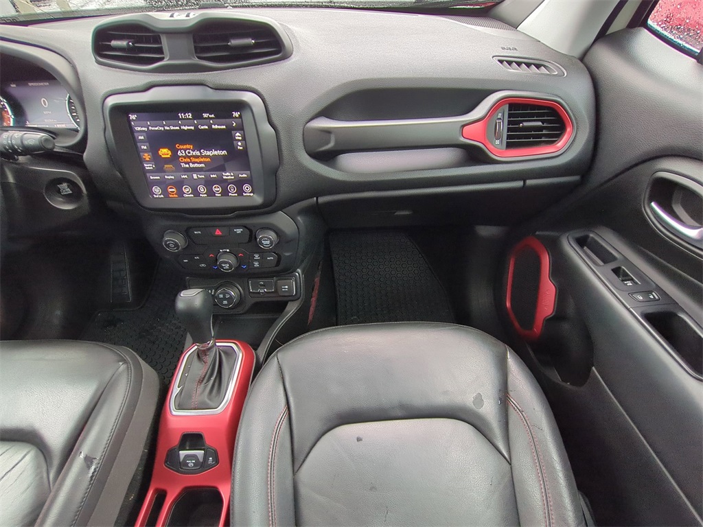 Alpine White 2018 Jeep Renegade Trailhawk 4WD 4WD Trailhawk 4WD **LOCAL TRADE**, Android Auto, Apple Carplay, Backup Camera, Bi Xenon Headlamp Package, Blind Spot Monitoring, Bluetooth w/ Audio Streaming, Cold Weather Package, Hill Start Assist, Leather Seats, Panoramic Sunroof/Moonroof, Parking Sensors, Power Mirror Package, Power Package, Preferred Equipment Package, Rear Cross Traffic Alert, Remote Start, Reverse Brake Assist, Reverse Sensing, Safety Package, Skid Plate Package, 4D Sport Utility, 2.4L I4, 9-Speed 948TE Automatic, 4WD, 4-Wheel Disc Brakes, 40/20/40 Rear Seat w/Trunk Pass-Thru, 8.4" Touchscreen Display, ABS brakes, AM/FM radio: SiriusXM, Apple CarPlay/Android Auto, Auto-Dimming Rear-View Mirror, Automatic temperature control, Blind Spot & Cross Path Detection, Brake assist, Cluster 7" TFT Color Display, Compass, Delay-off headlights, Dual-Pane Panoramic Power Sunroof, Electronic Stability Control, For Details Visit DriveUconnect.com, Four wheel independent suspension, Front Center Armrest, Front dual zone A/C, Front fog lights, Front Seat Back Map Pockets, Fully automatic headlights, GPS Navigation, HD Radio, Heated door mirrors, Heated Front Seats, Heated Steering Wheel, High-Intensity Discharge Headlamps, Illuminated entry, Leather Shift Knob, Low tire pressure warning, Navigation System, Outside temperature display, Overhead console, Panic alarm, ParkView Rear Back-Up Camera, Passive Entry Remote Start Package, Passive Entry/Keyless Go, Power 8-Way Driver Manual 4-Way Passenger Seats, Power door mirrors, Power steering, Power windows, Premium Cloth Low-Back Bucket Seats, Premium Leather Group For Trailhawk, Premium Leather Trimmed Bucket Seats, Quick Order Package 2EE, Radio data system, Radio: Uconnect 4C Nav w/8.4" Display, Rain sensing wipers, Rear window wiper, Remote keyless entry, Roof rack: rails only, Safety & Security Group, Security Alarm, SiriusXM Traffic Plus, SiriusXM Travel Link, Speed control, Spoiler, Steering wheel mounted audio controls, Telescoping steering wheel, Tilt steering wheel, Tonneau Cover, Traction control, Trip computer, Turn signal indicator mirrors, Uconnect 8.4 Nav Group, Variably intermittent wipers, Wheels: 17" x 6.5" Semi-Gloss Black Aluminum, Windshield Wiper De-Icer.