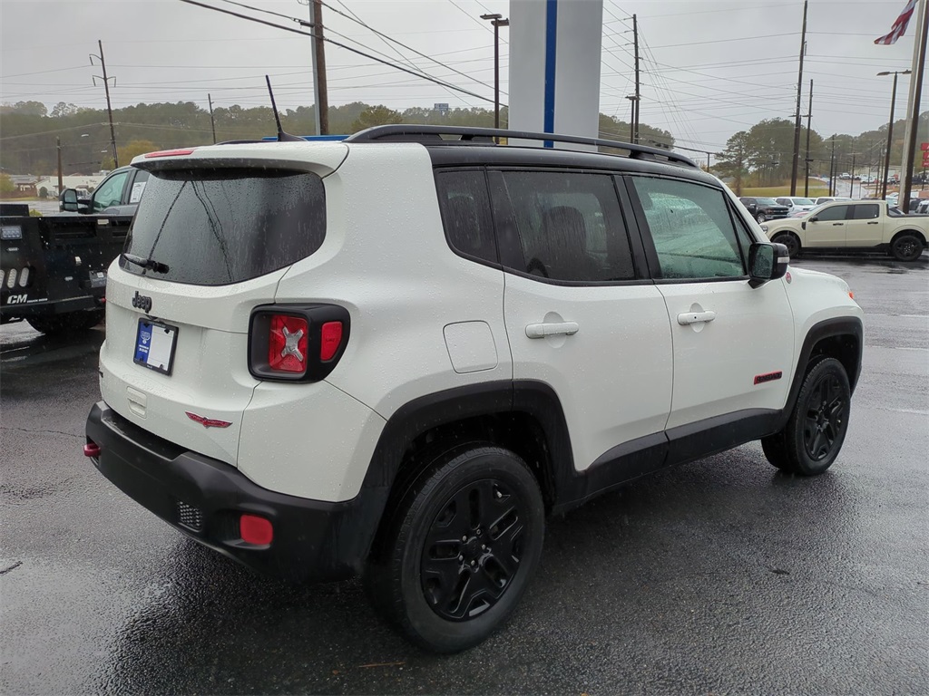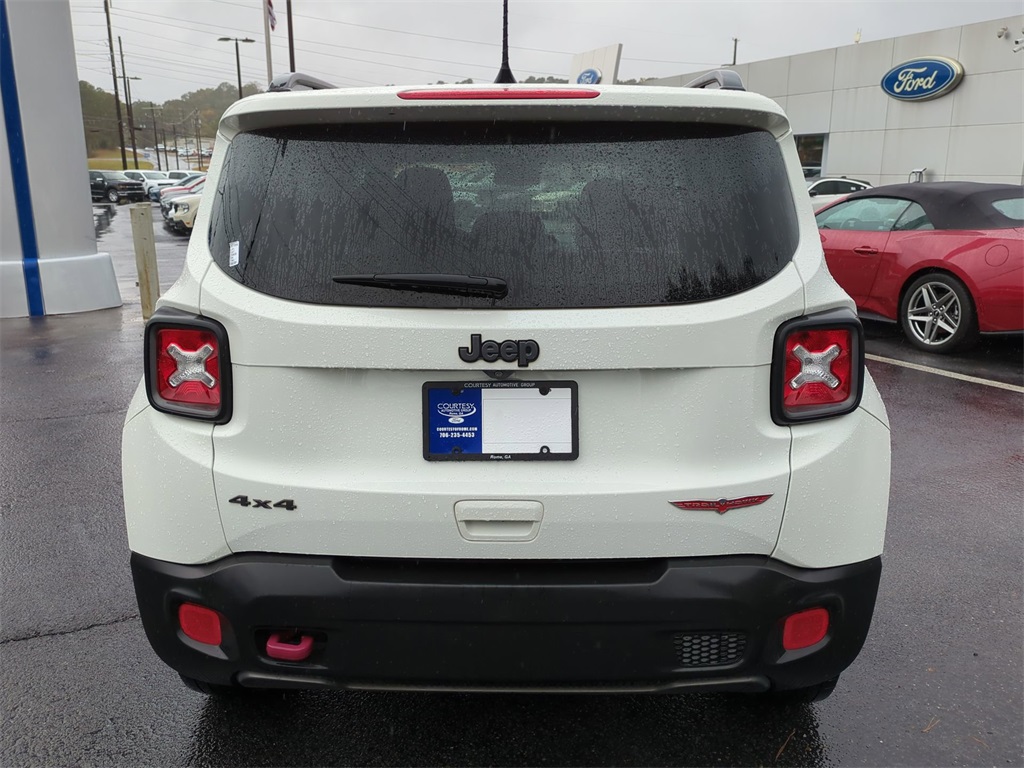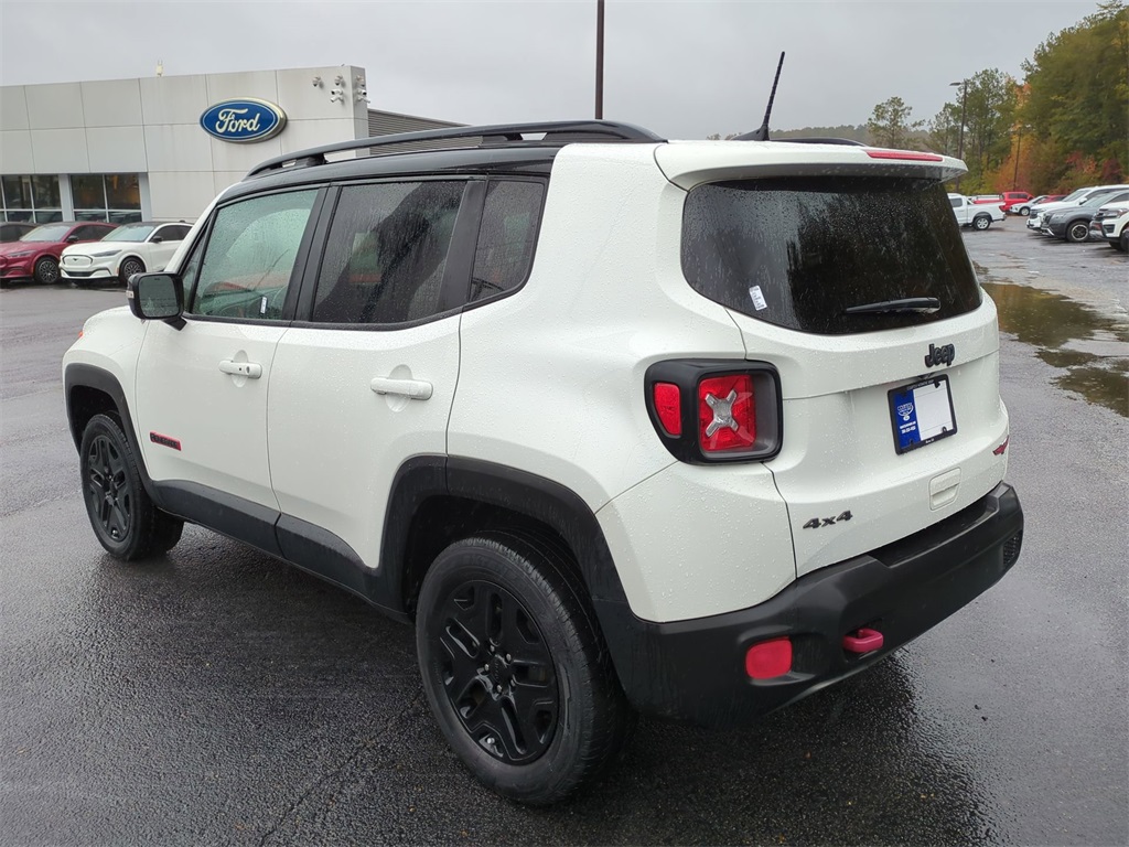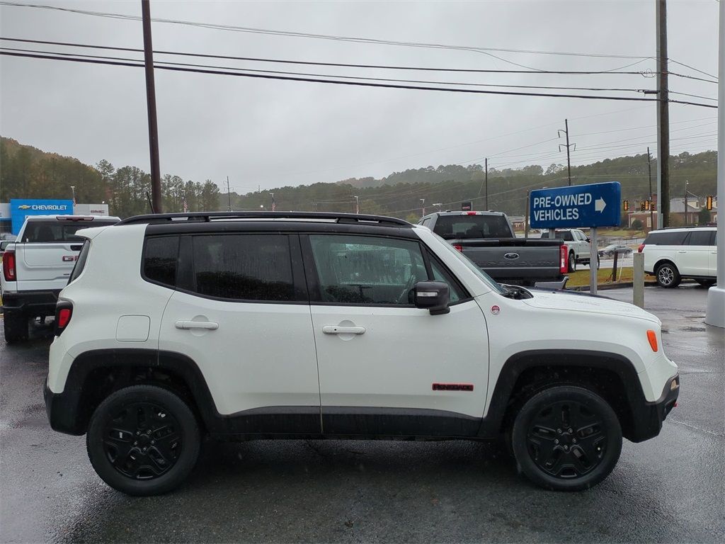 Alpine White 2018 Jeep Renegade Trailhawk 4WD 4WD Trailhawk 4WD **LOCAL TRADE**, Android Auto, Apple Carplay, Backup Camera, Bi Xenon Headlamp Package, Blind Spot Monitoring, Bluetooth w/ Audio Streaming, Cold Weather Package, Hill Start Assist, Leather Seats, Panoramic Sunroof/Moonroof, Parking Sensors, Power Mirror Package, Power Package, Preferred Equipment Package, Rear Cross Traffic Alert, Remote Start, Reverse Brake Assist, Reverse Sensing, Safety Package, Skid Plate Package, 4D Sport Utility, 2.4L I4, 9-Speed 948TE Automatic, 4WD, 4-Wheel Disc Brakes, 40/20/40 Rear Seat w/Trunk Pass-Thru, 8.4" Touchscreen Display, ABS brakes, AM/FM radio: SiriusXM, Apple CarPlay/Android Auto, Auto-Dimming Rear-View Mirror, Automatic temperature control, Blind Spot & Cross Path Detection, Brake assist, Cluster 7" TFT Color Display, Compass, Delay-off headlights, Dual-Pane Panoramic Power Sunroof, Electronic Stability Control, For Details Visit DriveUconnect.com, Four wheel independent suspension, Front Center Armrest, Front dual zone A/C, Front fog lights, Front Seat Back Map Pockets, Fully automatic headlights, GPS Navigation, HD Radio, Heated door mirrors, Heated Front Seats, Heated Steering Wheel, High-Intensity Discharge Headlamps, Illuminated entry, Leather Shift Knob, Low tire pressure warning, Navigation System, Outside temperature display, Overhead console, Panic alarm, ParkView Rear Back-Up Camera, Passive Entry Remote Start Package, Passive Entry/Keyless Go, Power 8-Way Driver Manual 4-Way Passenger Seats, Power door mirrors, Power steering, Power windows, Premium Cloth Low-Back Bucket Seats, Premium Leather Group For Trailhawk, Premium Leather Trimmed Bucket Seats, Quick Order Package 2EE, Radio data system, Radio: Uconnect 4C Nav w/8.4" Display, Rain sensing wipers, Rear window wiper, Remote keyless entry, Roof rack: rails only, Safety & Security Group, Security Alarm, SiriusXM Traffic Plus, SiriusXM Travel Link, Speed control, Spoiler, Steering wheel mounted audio controls, Telescoping steering wheel, Tilt steering wheel, Tonneau Cover, Traction control, Trip computer, Turn signal indicator mirrors, Uconnect 8.4 Nav Group, Variably intermittent wipers, Wheels: 17" x 6.5" Semi-Gloss Black Aluminum, Windshield Wiper De-Icer.