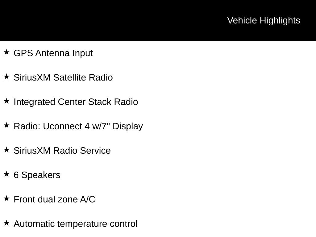 - Radio: Uconnect 4 w/7" Display