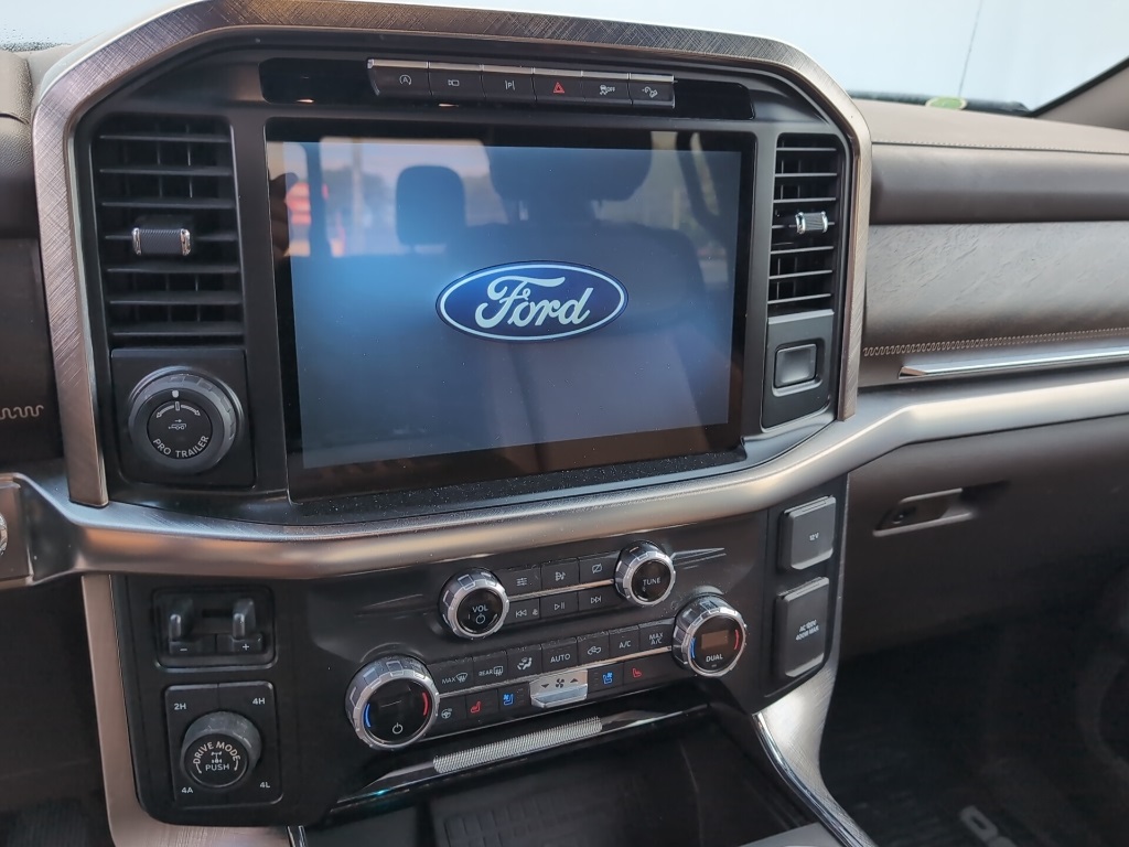 Star White Metallic Tri-Coat 2021 Ford F-150 King Ranch 4WD 4WD King Ranch 4WD **LOCAL TRADE**, 12" LCD Productivity Touchscreen, 360-Degree Camera, 4G WiFi Hotspot Telematics, Active Park Assist, Adaptive Cruise Control, Adaptive Steering, Auto Emergency Braking, Backup Camera, Bluetooth w/ Audio Streaming, Cold Weather Package, Evasive Steering Assist, King Ranch Package, Lane Keeping System, Leather Seats, LED Foglights, LED Projector Headlights, Memory Package, Off Road Package, Panoramic Sunroof/Moonroof, Parking Sensors, Post Collision Braking, Power Mirror Package, Power Package, Power Running Boards, Power Sliding Rear Window, Pre Collision Assist w/ AEB, Premium Audio Package, Premium Sound Package, Reverse Brake Assist, Reverse Sensing, Skid Plate Package, Tow Package, Trailer Package, Wireless Charging Pad, 4D SuperCrew, 3.5L V6 EcoBoost, 10-Speed Automatic, 4WD, 20" Machined-Aluminum Wheels, 360 Degree Camera, 4-Wheel Disc Brakes, 4x4 FX4 Off-Road Bodyside Decal, ABS brakes, Active Park Assist 2.0, Adjustable pedals, AM/FM radio: SiriusXM with 360L, Auto High-beam Headlights, Auto tilt-away steering wheel, Auto-dimming door mirrors, Auto-dimming Rear-View mirror, Automatic temperature control, BlueCruise Hands-Free Driving, Brake assist, Bright Belt Moldings, Chrome Door Handles w/Body-Color Strap, Chrome Skull Caps on Exterior Mirrors, Class IV Trailer Hitch Receiver, Compass, Delay-off headlights, Electronic Locking w/3.31 Axle Ratio, Electronic Stability Control, Emergency communication system: SYNC 4 911 Assist, Equipment Group 601A High, Extended Range 36 Gallon Fuel Tank, Exterior Parking Camera Rear, Ford Co-Pilot360 Active 2.0 Package, Front Center Armrest, Front dual zone A/C, Front fog lights, Front wheel independent suspension, Fully automatic headlights, FX4 Off-Road Package, Garage door transmitter, Genuine wood console insert, Genuine wood dashboard insert, Genuine wood door panel insert, Heated door mirrors, Heated front seats, Heated rear seats, Heated steering wheel, Hill Descent Control, Illuminated entry, Integrated Trailer Brake Controller, Interior Work Surface, King Ranch Chrome Appearance Package, King Ranch Leather Bucket Seats, King Ranch Monochromatic Paint Package, LED Sideview Mirror Spotlights, Low tire pressure warning, Max Trailer Tow Package, Memory seat, Monotube Rear Shocks, Navigation system: Connected Navigation (90-Day Trial), Off-Road Tuned Front Shock Absorbers, Outside temperature display, Overhead console, Painted Body-Color Wheellip Molding, Panic alarm, Pedal memory, Power door mirrors, Power passenger seat, Power Tailgate, Power-Deployable Running Boards, Pro Trailer Backup Assist, Radio: B&O Sound System by Bang & Olufsen, Radio: B&O Unleashed Sound System by Bang & Olufsen, Rain sensing wipers, Rear seat center armrest, Rear step bumper, Remote keyless entry, Rock Crawl Mode, Security system, Speed-sensing steering, Split folding rear seat, Steering wheel memory, Steering wheel mounted audio controls, SYNC 4 w/Enhanced Voice Recognition, Telescoping steering wheel, Tilt steering wheel, Traction control, Tray Style Floor Liner, Trip computer, Turn signal indicator mirrors, Twin Panel Moonroof, Ventilated front seats, Wheels: 20" Chrome-Like PVD.
