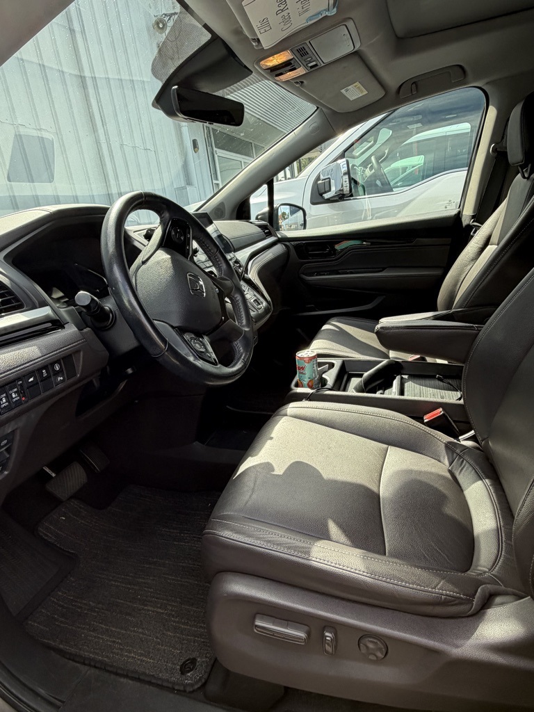 Pacific Pewter Metallic 2021 Honda Odyssey Touring FWD Touring **LOCAL TRADE**, Adaptive Cruise Control, Android Auto, Apple Carplay, Backup Camera, Blind Spot Monitoring, Bluetooth w/ Audio Streaming, DVD Entertainment Package, Leather Seats, Power Mirror Package, Power Package, 4D Passenger Van, 3.5L V6 SOHC i-VTEC 24V, 10-Speed Automatic, FWD, 3rd row seats: split-bench, 4-Wheel Disc Brakes, A/V remote: CabinControl, ABS brakes, Adaptive Cruise Control: Adaptive Cruise Control (ACC) with Low-Speed Follow, AM/FM radio: SiriusXM, Apple CarPlay/Android Auto, Auto High-beam Headlights, Auto-dimming Rear-View mirror, Automatic temperature control, Blind Spot Information (BSI) System warning, Brake assist, Compass, Delay-off headlights, Electronic Stability Control, Emergency communication system: HondaLink, Exterior Parking Camera Rear, Forward collision: Collision Mitigation Braking System (CMBS) + FCW mitigation, Four wheel independent suspension, Front dual zone A/C, Front fog lights, Fully automatic headlights, Garage door transmitter: HomeLink, Headphones, Heated door mirrors, Heated Front Bucket Seats, Illuminated entry, Lane departure: Lane Keeping Assist System (LKAS) active, Leather Seat Trim, Leather steering wheel, Low tire pressure warning, Memory seat, Navigation system: Honda Satellite-Linked Navigation System, Outside temperature display, Overhead console, Panic alarm, Power door mirrors, Power Liftgate, Power moonroof, Power passenger seat, Radio data system, Radio: 160-Watt AM/FM/HD/SiriusXM Audio System, Rear air conditioning, Rear audio controls, Rear seat center armrest, Rear window wiper, Reclining 3rd row seat, Remote keyless entry, Security system, Speed-sensing steering, Speed-Sensitive Wipers, Split folding rear seat, Spoiler, Steering wheel mounted audio controls, Telescoping steering wheel, Tilt steering wheel, Traction control, Trip computer, Turn signal indicator mirrors, Wheels: 19" Machine-Finished Alloy.