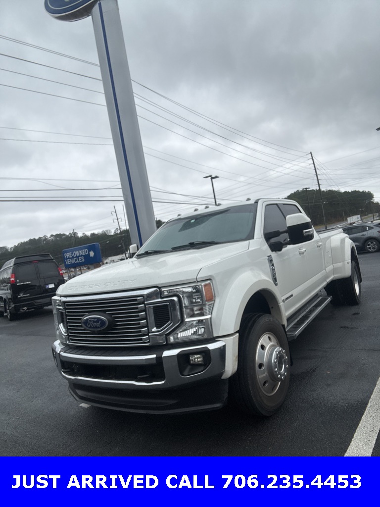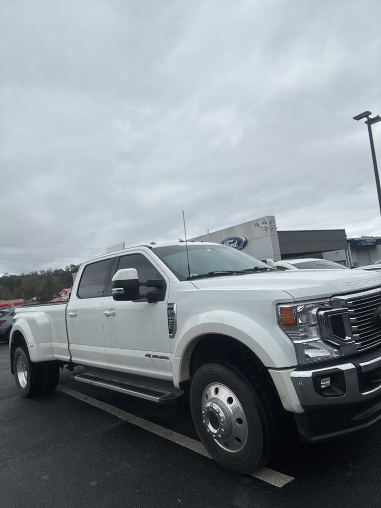 Star White Metallic Tri-Coat 2022 Ford F-450SD Lariat DRW 4WD FX4 4WD Lariat DRW 4WD FX4 12" LCD Productivity Touchscreen, 4G WiFi Hotspot Telematics, Adaptive Cruise Control, Auto Emergency Braking, Backup Camera, Bluetooth w/ Audio Streaming, Cold Weather Package, Heavy Duty Trailer Package, Leather Seats, Memory Package, Multimedia Package, Off Road Package, Panoramic Sunroof/Moonroof, Parking Sensors, Power Mirror Package, Power Package, Power Sliding Rear Window, Pre Collision Assist w/ AEB, Preferred Equipment Package, Premium Audio Package, Premium Sound Package, Remote Start, Reverse Brake Assist, Reverse Sensing, Skid Plate Package, 4D Crew Cab, Power Stroke 6.7L V8 DI 32V OHV Turbodiesel, 10-Speed Automatic, 4WD, 10 Speakers, 19.5" Forged Polished Aluminum Wheels, 4-Wheel Disc Brakes, 8-Way Power Driver's Seat, ABS brakes, Alloy wheels, Ambient Lighting - Fixed Color, Automatic temperature control, BLIS Blind Spot Information System, Brake assist, Compass, Delay-off headlights, Dual rear wheels, Easy Entry/Exit Memory Driver's Seat Feature, Electronic Stability Control, Exterior Parking Camera Rear, Front dual zone A/C, Fully automatic headlights, FX4 Off-Road Package, GVWR: 14,000 lb Payload Package, Heated Rear Seats, Heated Steering Wheel, Hill Descent Control, Intelligent Access w/Push-Button Start, Lariat Ultimate Package, LED Box Lighting, Limited Slip w/4.30 Axle Ratio, Memory seat, Off-Road Specifically Tuned Shock Absorbers, Order Code 678A, Outside temperature display, Overhead console, Passenger vanity mirror, Pedal memory, Power Heated/Ventilated Driver Seat w/Memory, Power Heated/Ventilated Passenger Seat, Power steering, Power Telescoping/Tilt Steering Wheel/Column, Power-Adjustable Pedals with Memory, Power-Sliding Rear-Window w/Defrost, PowerScope Trailer Tow Mirrors w/Memory, Radio: B&O Sound System by Bang & Olufsen, Rain-Sensing Windshield Wipers, Rear step bumper, Remote Start System, Remote Tailgate Release, SiriusXM Radio w/360L, Steering wheel mounted audio controls, SYNC 4 w/Enhanced Voice Recognition, Tailgate Step & Handle, Telescoping steering wheel, Tilt steering wheel, Traction control, Trip computer, Twin Panel Power Moonroof, Ultimate Trailer Tow Camera System, Unique FX4 Off-Road Box Decal.