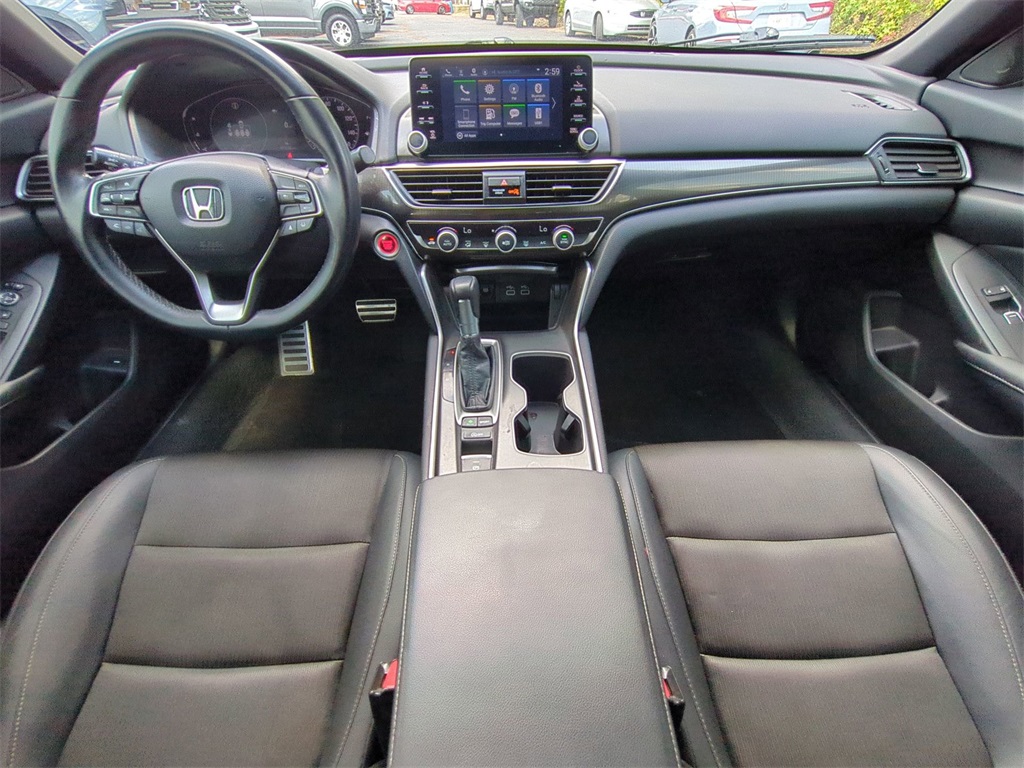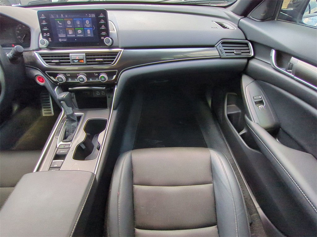 Crystal Black Pearl 2022 Honda Accord Sport FWD Sport 8" Color Touchscreen, Adaptive Cruise Control, Android Auto, Apple Carplay, Auto Emergency Braking, Backup Camera, Bluetooth w/ Audio Streaming, Driver Attention Warning, Foward Collison Alert, Power Mirror Package, Power Package, Sport Package, 4D Sedan, 1.5T I4 DOHC 16V Turbocharged VTEC, CVT, FWD, 4-Wheel Disc Brakes, 8 Speakers, ABS brakes, Adaptive Cruise Control: Adaptive Cruise Control (ACC) with Low-Speed Follow, Apple CarPlay/Android Auto, Auto High-beam Headlights, Automatic temperature control, Brake assist, Delay-off headlights, Electronic Stability Control, Emergency communication system: HondaLink, Exterior Parking Camera Rear, Fabric w/Synthetic Leather Seat Trim, Forward collision: Collision Mitigation Braking System (CMBS) + FCW mitigation, Four wheel independent suspension, Front Center Armrest, Front dual zone A/C, Front fog lights, Fully automatic headlights, Illuminated entry, Lane Departure Warning System, Leather Shift Knob, Leather steering wheel, Low tire pressure warning, Outside temperature display, Overhead console, Panic alarm, Power door mirrors, Power driver seat, Power steering, Power windows, Radio data system, Radio: 180-Watt AM/FM Audio System, Rear seat center armrest, Remote keyless entry, Security system, Speed-sensing steering, Speed-Sensitive Wipers, Split folding rear seat, Spoiler, Steering wheel mounted audio controls, Telescoping steering wheel, Tilt steering wheel, Traction control, Trip computer, Wheels: 19" Machine-Finished Alloy w/Black Inserts.