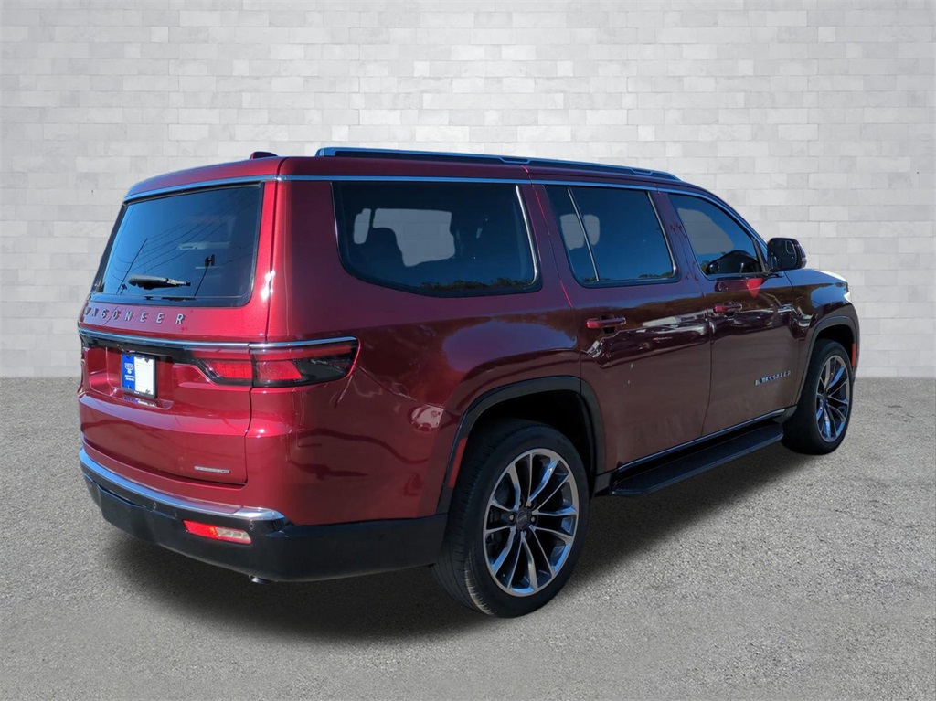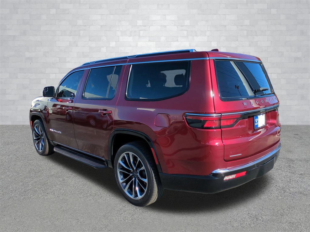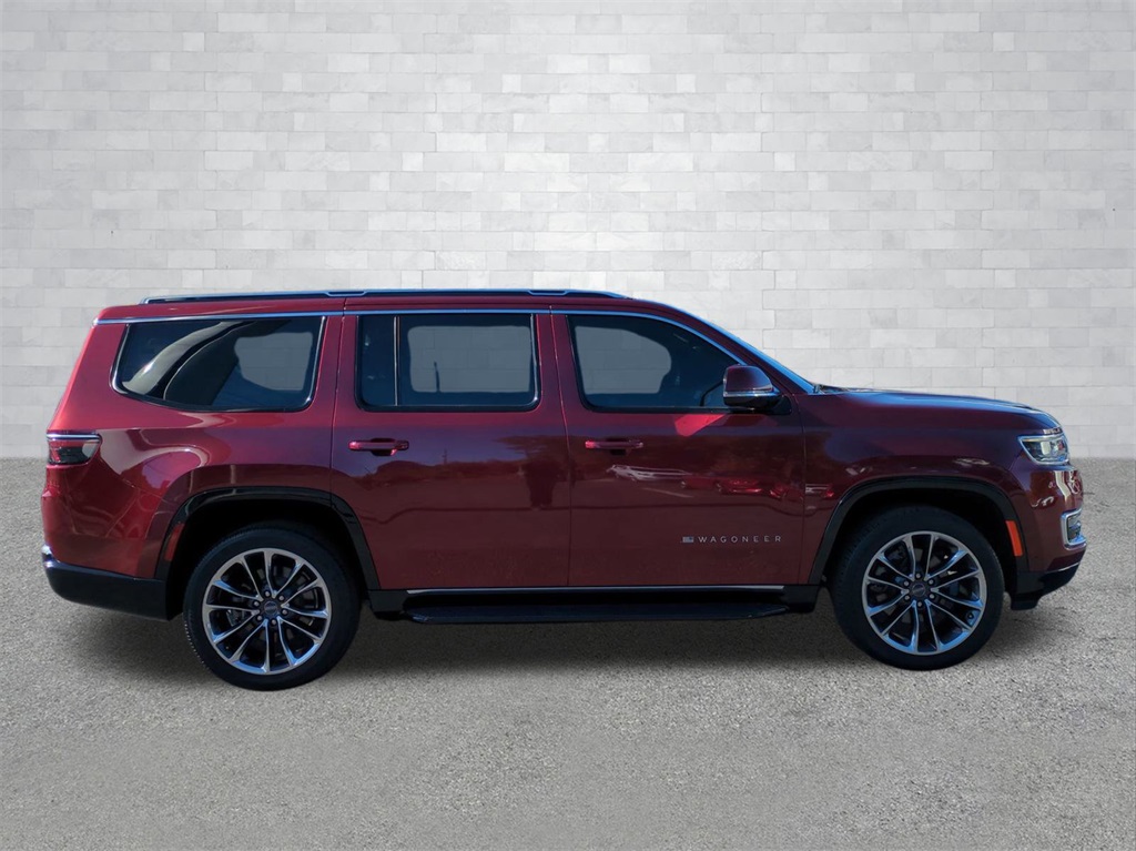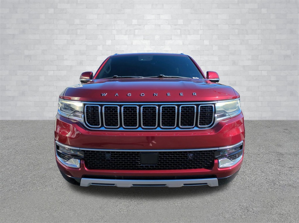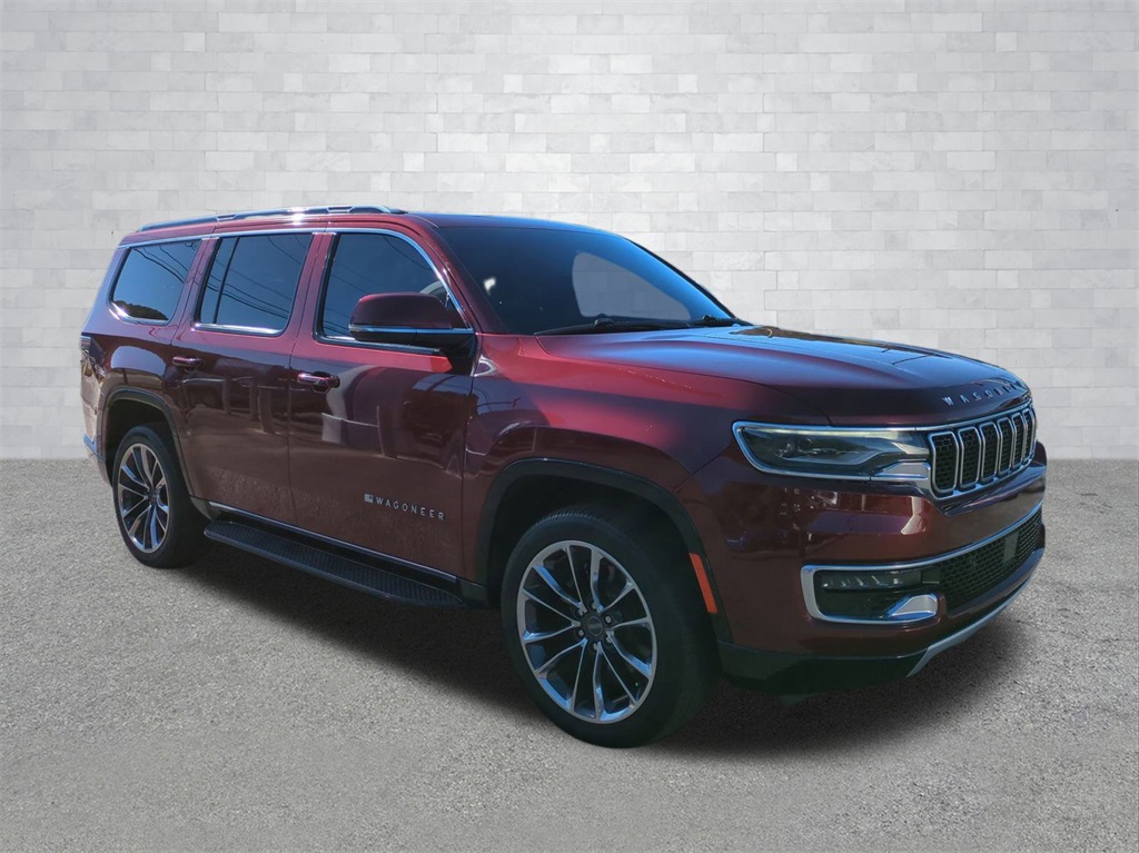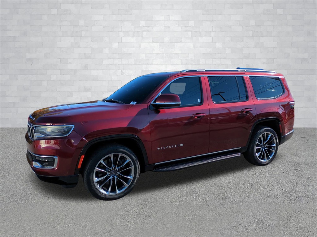 Velvet Red Pearlcoat 2022 Jeep Wagoneer Series II 4WD 4WD Series II 4WD **LOCAL TRADE**, 3rd Row Seating, Adaptive Cruise Control, Android Auto, Apple Carplay, Auto LED Headlights, Backup Camera, Blind Spot Monitoring, Bluetooth w/ Audio Streaming, Cold Weather Package, Front Pedestrian Braking, Full Speed Auto Collision Warning Plus, Hill Start Assist, Lane Keeping System, Leather Seats, Multi Zone Climate Control, Panoramic Sunroof/Moonroof, Parking Sensors, Preferred Equipment Package, Premium Package, Push Button Start, Rear Climate Package, Rear Cross Traffic Alert, Remote Start, Reverse Brake Assist, Reverse Sensing, Safety Package, Tow Package, Trailer Package, Wireless Charging Pad, 4D Sport Utility, 5.7L V8, 8-Speed Automatic, 4WD, 10 Speakers, 3 Panel Sunroof, 3rd row seats: bench, 4-Wheel Disc Brakes, ABS brakes, Adjustable pedals, Adjustable Roof Rail Crossbars, Auto-dimming door mirrors, Auto-dimming Rear-View mirror, Auto-leveling suspension, Automatic temperature control, Brake assist, Cargo Cover, Compass, Delay-off headlights, Electronic Stability Control, Exterior Parking Camera Rear, Four wheel independent suspension, Front Center Armrest w/Storage, Front dual zone A/C, Front fog lights, Fully automatic headlights, Garage door transmitter, Genuine wood console insert, Genuine wood dashboard insert, Genuine wood door panel insert, Heated front seats, Heated steering wheel, Illuminated entry, Leather Trimmed Bucket Seats, Low tire pressure warning, Memory seat, Navigation System, Normal Duty Suspension, Outside temperature display, Overhead console, Panic alarm, Pedal memory, Power adjustable front head restraints, Power door mirrors, Power Liftgate, Power passenger seat, Premium Group I (DISC), Quick Order Package 22J, Radio data system, Radio: Uconnect 5 Nav w/10.1" Display, Rain sensing wipers, Rear air conditioning, Rear dual zone A/C, Rear seat center armrest, Rear window wiper, Reclining 3rd row seat, Remote keyless entry, Reversible Carpet/Vinyl Cargo Mat, Security system, Speed control, Speed-sensing steering, Speed-Sensitive Wipers, Split folding rear seat, Steering wheel memory, Steering wheel mounted audio controls, Telescoping steering wheel, Tilt steering wheel, Traction control, Trip computer, Turn signal indicator mirrors, Ventilated front seats, Wheels: 22" x 9.0" Premium 3 Aluminum (DISC).
