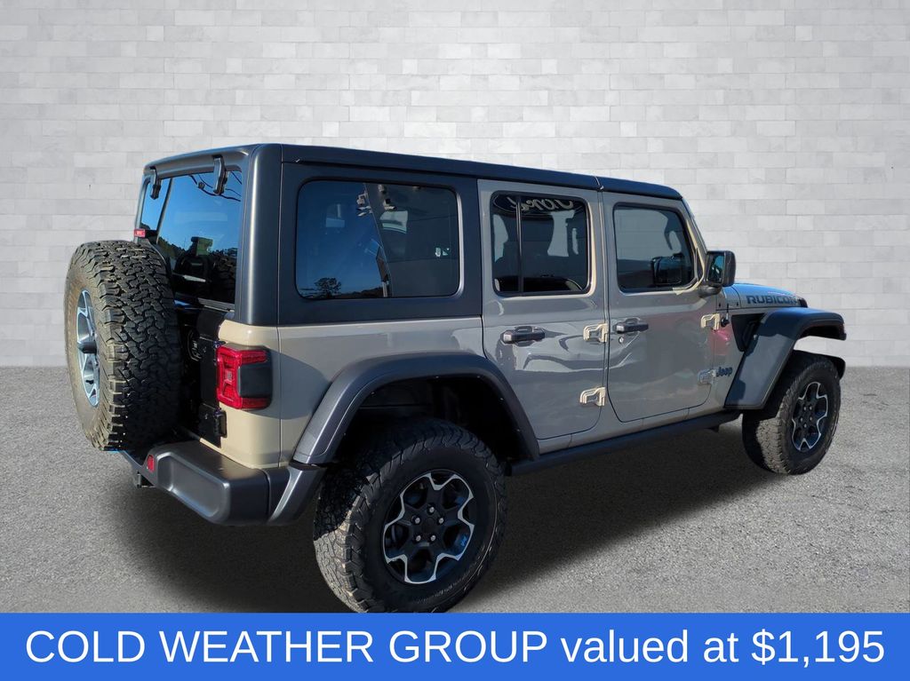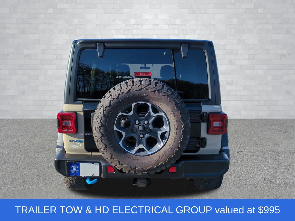 This Jeep Wrangler Unlimited Rubicon 4xe 4WD is also equipped with a Cold Weather Group, Quick Order Package 29V, and Trailer Tow & HD Electrical Group, ensuring you have the capabilities and comforts to conquer any terrain.