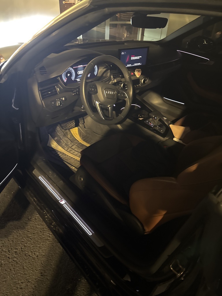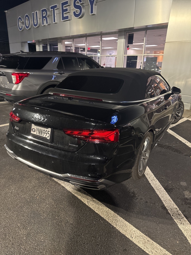 Mythos Black Metallic/Black Roof 2023 Audi A5 45 S line Prestige Convertible quattro 45 S line Prestige Convertible **LOCAL TRADE**, 360-Degree Camera, Adaptive Cruise Control, Android Auto, Apple Carplay, Auto LED Headlights, Backup Camera, Blind Spot Monitoring, Bluetooth w/ Audio Streaming, Cold Weather Package, Lane Departure Warning, Lane Keeping System, Leather Seats, Memory Package, Multi Zone Climate Control, Parking Sensors, Power Mirror Package, Premium Audio Package, Premium Sound Package, Push Button Start, Rear Cross Traffic Alert, Reverse Brake Assist, Reverse Sensing, Safety Package, WiFi Hotspot Capable, 2D Convertible, 2.0L 4-Cylinder TFSI, 7-Speed Automatic S tronic, quattro, 10 Speakers, 4-Wheel Disc Brakes, ABS brakes, Adaptive Cruise Control, Alarm System w/Motion Sensor, Animation for Headlights & Taillights, Audi Active Lane Assist, Audi Advanced Key, Audi Connect PLUS, Audi Laser Light w/Headlight Washers, Audi Phone Box, Audi Side Assist w/Pre Sense Rear, Audi Virtual Cockpit Plus, Auto High-beam Headlights, Auto-Dimming Exterior Mirrors w/Memory, Auto-dimming Rear-View mirror, Automatic temperature control, Bang & Olufsen Sound System w/3D Sound, Brake assist, Compass, Convenience Package, Convertible roof lining, Convertible roof wind blocker, Delay-off headlights, Driver Seat Memory, Electronic Stability Control, Emergency communication system: Audi connect CARE, Exterior Parking Camera Rear, Four wheel independent suspension, Front Center Armrest, Front dual zone A/C, Front fog lights, Garage door transmitter: HomeLink, Genuine wood console insert, Genuine wood dashboard insert, Genuine wood door panel insert, Glass rear window, Hands-On Detection Steering Wheel, Head-Up Display, Heated door mirrors, Heated Front Sport Seats, Heated Steering Wheel, Illuminated entry, Integrated roll-over protection, Leather Seating Surfaces, Leather Shift Knob, Leather steering wheel, Leatherette Covered Center Console & Door Armrests, LED Interior Lighting Plus Package, Low tire pressure warning, MMI Navigation Plus, Navigation Package, Navigation System, Neck-Level Heating System, Outside temperature display, Panic alarm, Park Assist, Parking System Plus (Front/Rear Acoustic Sensors), Power convertible roof, Power door mirrors, Power Folding Exterior Mirrors, Power passenger seat, Prestige, Radio data system, Radio: Audi Sound System, Rain sensing wipers, Rear air conditioning, Remote keyless entry, SiriusXM w/360L, Speed-sensing steering, Speed-Sensitive Wipers, Split folding rear seat, Steering wheel mounted audio controls, Telescoping steering wheel, Tilt steering wheel, Top View Camera System, Traction control, Traffic Jam Assist, Traffic Sign Recognition, Trip computer, Ventilated Front Seats, Warm Weather Package, Wheels: 18" 5-Double-Spoke Design.
