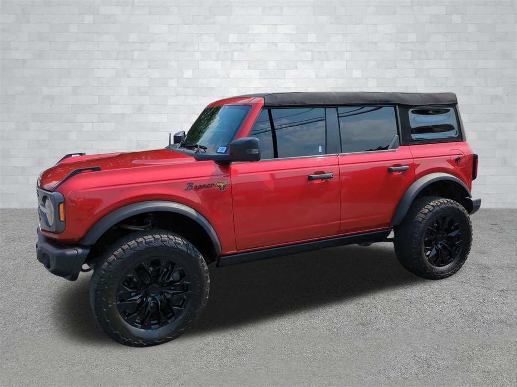 Hot Pepper Red Metallic Tinted Clearcoat 2023 Ford Bronco Badlands 4WD 4WD Badlands 4WD 12" LCD Productivity Touchscreen, 360-Degree Camera, 4G WiFi Hotspot Telematics, Auto Emergency Braking, Auto LED Headlights, Backup Camera, Hill Start Assist, Leather Seats, Power Mirror Package, Power Package, Pre Collision Assist w/ AEB, Remote Start, 4D Sport Utility, 2.7L EcoBoost V6, 10-Speed Automatic, 4WD, 12" LCD Capacitive Touchscreen w/Swipe Capability, 2-Door Intelligent Access w/Lock/Unlock, 360-Degree Camera, 4-Wheel Disc Brakes, 7 Speakers, Adaptive Cruise Control, Additional Sound Deadening, Alloy wheels, AM/FM Stereo, Ambient Footwell Lighting, Auto High-beam Headlights, Auto-Dimming Interior Rear-View Mirror, Brake assist, Connected Navigation, Delay-off headlights, Dr & Pass Illuminated Sliding Visor Vanity Mirrors, Dual-Zone Electronic Automatic Temperature Control, Electronic Stability Control, Emergency communication system: 911 Assist, Enhanced Voice Recognition, Equipment Group 333A High Package, Front Center Armrest, Front Parking Sensors, Front Row Heated Seats, Front wheel independent suspension, Fully automatic headlights, Heated door mirrors, Illuminated entry, Information on Demand Panel, Integrated roll-over protection, Low tire pressure warning, Outside temperature display, Overhead console, Power door mirrors, Power Outlet - Back Side of Center Floor Console, Power steering, Power windows, Radio: 6 Speakers w/Subwoofer Delete, Rear Parking Sensors, Remote keyless entry, Security system, Sideview Mirrors, SiriusXM Radio w/360L, Speed control, Split folding rear seat, Steering wheel mounted audio controls, SYNC 4, Telescoping steering wheel, Tilt steering wheel, Traction control, Trip computer, Variably intermittent wipers.