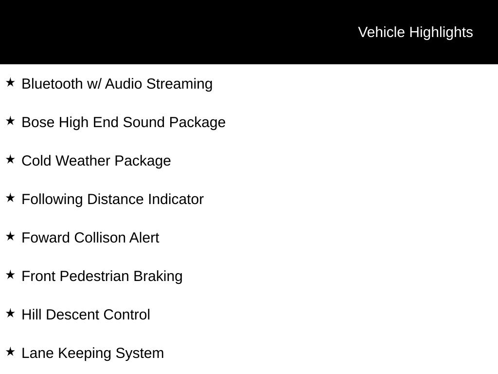 - Lane Keep Assist w/Lane Departure Warning