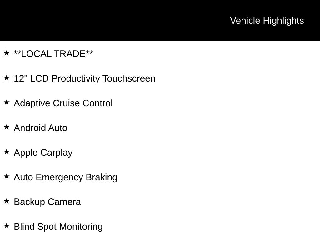 - Adaptive Cruise Control: Adaptive Cruise Control (ACC) with Low-Speed Follow