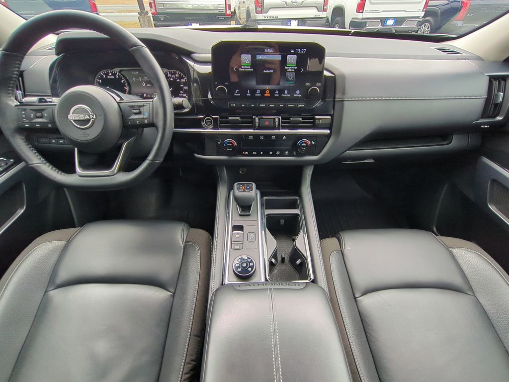 Imagine yourself behind the wheel, navigating the open road with confidence and style. The Pathfinder's spacious interior and versatile cargo area make it the perfect companion for your family adventures, weekend getaways, or daily commutes. Experience the convenience of the advanced technology features, the comfort of the leather-appointed seats, and the power of the V6 engine all in one exceptional package.