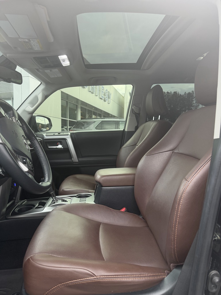 Midnight Black Metallic 2023 Toyota 4Runner Limited RWD Limited **LOCAL TRADE**, 360-Degree Camera, 3rd Row Seating, 8" Color Touchscreen, Adaptive Cruise Control, Backup Camera, Blind Spot Monitoring, Foward Collison Alert, HD Surround Vision, Lane Departure Warning, Lane Keeping System, Leather Seats, Limited Package, Memory Package, Multi Zone Climate Control, Parking Sensors, Power Mirror Package, Power Package, Rear Climate Package, Rear Cross Traffic Alert, Reverse Brake Assist, Reverse Sensing, Skid Plate Package, Toyota Safety Sense, 4D Sport Utility, 4.0L V6 DOHC 24V, 5-Speed with ECT, RWD, Redwood Leather, 15 Speakers, 4-Wheel Disc Brakes, ABS brakes, AM/FM radio: SiriusXM, Apple CarPlay/Android Auto, Auto High-beam Headlights, Auto-dimming Rear-View mirror, Automatic temperature control, Brake assist, Compass, Delay-off headlights, Dual Zone Auto Climate Control, Electronic Stability Control, Emergency communication system: Safety Connect (1-year trial), Front Center Armrest, Front dual zone A/C, Front fog lights, Front wheel independent suspension, Fully automatic headlights, Garage Door Opener, Garage door transmitter: HomeLink, Heated & Ventilated Front Bucket Seats, Heated door mirrors, Heated Outside Rear-View Mirrors, Illuminated entry, Leather Seat Trim, Low tire pressure warning, Memory seat, Moonroof w/Tilt Up & Slide, Navigation System, Outside temperature display, Overhead console, Panic alarm, Panoramic Back Monitor, Power door mirrors, Power moonroof, Power passenger seat, Power windows, Radio: Premium Audio w/JBL, Rear seat center armrest, Rear window wiper, Remote keyless entry, Security system, Speed control, Speed-sensing steering, Split folding rear seat, Spoiler, Steering wheel mounted audio controls, Telescoping steering wheel, Tilt steering wheel, Traction control, Trip computer, Turn signal indicator mirrors, Variably intermittent wipers, Ventilated front seats, Wheels: 20" Unique Dual 6-Spoke Alloy.