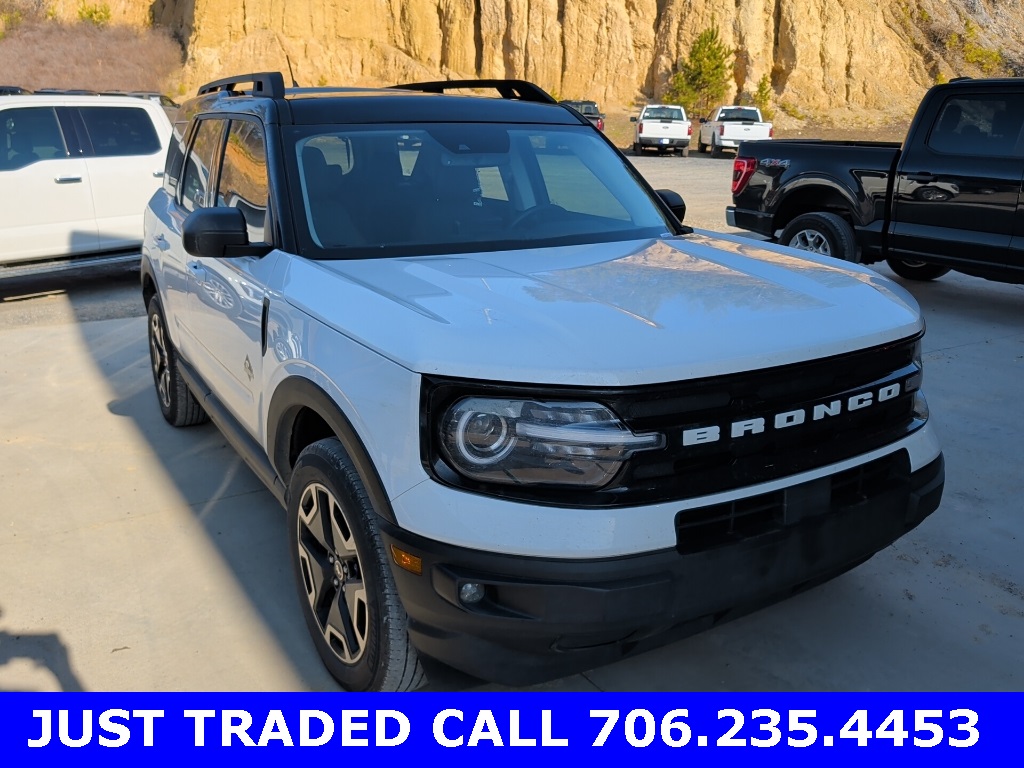Oxford White 2024 Ford Bronco Sport Outer Banks 4WD 4WD Outer Banks 4WD 8" Color Touchscreen, Auto LED Headlights, Backup Camera, LED Foglights, Memory Package, Parking Sensors, Power Mirror Package, Power Package, Premium Audio Package, Premium Sound Package, Push Button Start, Remote Start, Reverse Brake Assist, Reverse Sensing, Sunroof/Moonroof, Wireless Charging Pad, 4D Sport Utility, 1.5L EcoBoost, 8-Speed Automatic, 4WD, 4-Wheel Disc Brakes, ABS brakes, AM/FM radio: SiriusXM, Auto High-beam Headlights, Auto-dimming Rear-View mirror, Automatic temperature control, Brake assist, Compass, Delay-off headlights, Electronic Stability Control, Emergency communication system: SYNC 3 911 Assist, Equipment Group 300A, Evasive Steering Assist, Ford Co-Pilot360 Assist+, Four wheel independent suspension, Front Bucket Seats, Front Center Armrest, Front dual zone A/C, Front fog lights, Fully automatic headlights, HD Radio, Heated door mirrors, Heated front seats, Heated steering wheel, Illuminated entry, Intelligent Adaptive Cruise Control w/Stop & Go, Low tire pressure warning, Memory seat, Outside temperature display, Overhead console, Panic alarm, Power door mirrors, Power driver seat, Power Moonroof, Power passenger seat, Power steering, Power windows, Premium-Trimmed Heated Sport Contour Bucket Seats, Radio data system, Rain sensing wipers, Rear Parking Sensors, Rear seat center armrest, Rear window wiper, Remote keyless entry, Security system, SiriusXM, Speed-sensing steering, Speed-Sensitive Wipers, Split folding rear seat, Steering wheel mounted audio controls, SYNC 3 Communications & Entertainment System, Tech Package, Telescoping steering wheel, Tilt steering wheel, Traction control, Trip computer, Universal Garage Door Opener (UGDO), Voice-Activated Touchscreen Navigation System, Wheels: 18" Ebony Black-Painted Aluminum, Wireless Charging Pad.