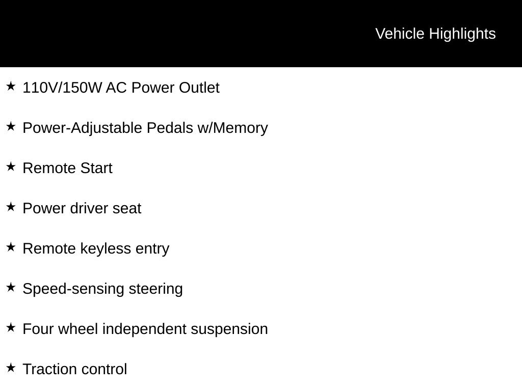 - Power Tilt/Telescopic Steering Wheel w/Memory