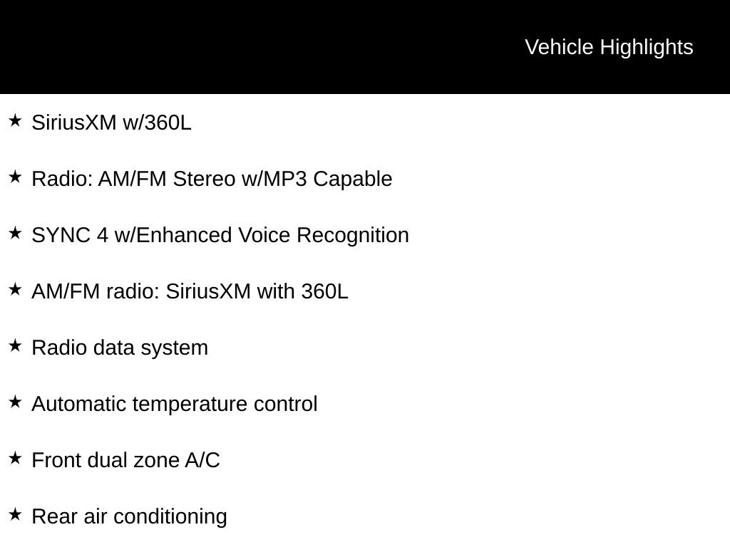 The Expedition's spacious interior offers seating for up to 8 passengers, with the added convenience of a power liftgate and 2nd-row power-folding captain's chairs. Stay connected and entertained with the SYNC 4 infotainment system, complete with a 12" touchscreen, navigation, and a premium audio system.