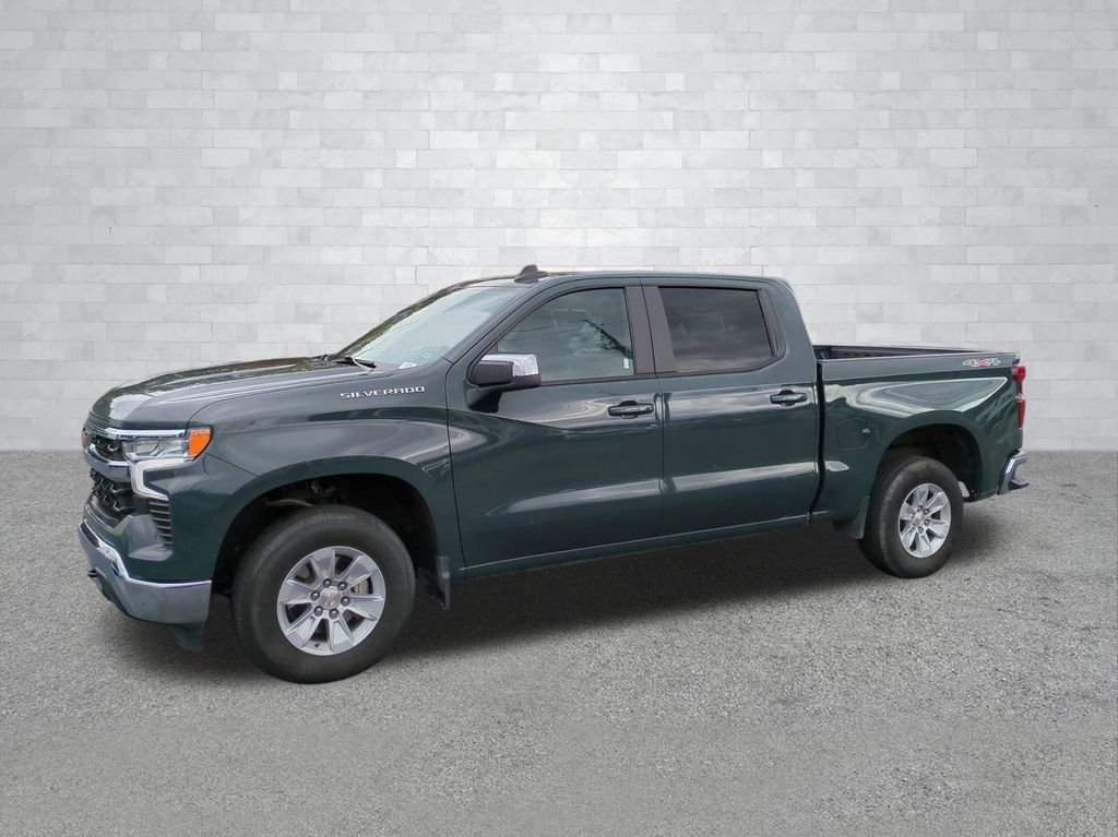 Cypress Gray 2025 Chevrolet Silverado 1500 LT 4WD 4WD LT 4WD **LOCAL TRADE**, 12.3" HD Color Driver Cluster, 13.4" HD Color Touchscreen, Android Auto, Apple Carplay, Auto Emergency Braking, Backup Camera, Bluetooth w/ Audio Streaming, Cold Weather Package, Following Distance Indicator, Foward Collison Alert, Front Pedestrian Braking, Hitch Guidance w/ Hitch View, Lane Keeping System, Lane Tracing Assist, LT Package, Power Mirror Package, Power Package, Preferred Equipment Package, Push Button Start, Remote Start, Safety Package, WiFi Hotspot Capable, 4D Crew Cab, EcoTec3 5.3L V8, 10-Speed Automatic, 4WD, 10-Way Power Driver Seat w/Lumbar, 12.3" Multicolor Reconfigurable Digital Display, 120-Volt Bed Mounted Power Outlet, 120-Volt Interior Power Outlet, 220 Amp Alternator, 4-Wheel Disc Brakes, 40/20/40 Front Split-Bench Seat, 6-Speaker Audio System, ABS brakes, All-Star Edition, AM/FM radio: SiriusXM with 360L, Apple CarPlay/Android Auto, Auto High-beam Headlights, Auto-Locking Rear Differential, Automatic Emergency Braking, Bluetooth For Phone, Brake assist, Chrome Mirror Caps, Color-Keyed Carpeting Floor Covering, Convenience Package, Deep-Tinted Glass, Delay-off headlights, Dual Rear USB Ports (Charge Only), Dual-Zone Automatic Climate Control, Electric Rear-Window Defogger, Electronic Cruise Control, Electronic Stability Control, Emergency communication system: OnStar, External Engine Oil Cooler, EZ Lift Power Lock & Release Tailgate, Following Distance Indicator, Forward Collision Alert, Front Center Armrest w/Storage, Front Frame-Mounted Black Recovery Hooks, Front Pedestrian Braking, Front Rubberized Vinyl Floor Mats, Front wheel independent suspension, Fully automatic headlights, HD Rear Vision Camera, Heated door mirrors, Heated Driver & Front Outboard Passenger Seats, Heated Power-Adjustable Outside Mirrors, Heated Steering Wheel, Hitch Guidance, Illuminated entry, Inside Rear-View Mirror w/Tilt, Integrated Trailer Brake Controller, IntelliBeam Automatic High Beam On/Off, Keyless Open & Start, Lane Keep Assist w/Lane Departure Warning, LED Cargo Area Lighting, Low tire pressure warning, Manual Tilt/Telescoping Steering Column, OnStar Services Capable, Outside temperature display, Overhead console, Panic alarm, Power door mirrors, Power Front Windows w/Driver Express Up/Down, Power Front Windows w/Passenger Express Down, Power Rear Windows w/Express Down, Preferred Equipment Group 1LT, Premium audio system: Chevrolet Infotainment 3 Premium, Radio data system, Rear 60/40 Folding Bench Seat (Folds Up), Rear Rubberized-Vinyl Floor Mats, Rear step bumper, Remote keyless entry, Remote Start Package, Remote Vehicle Starter System, Security system, SiriusXM w/360L Trial Subscription, Speed control, Speed-sensing steering, Split folding rear seat, Standard Suspension Package, Standard Tailgate, Steering Wheel Audio Controls, Steering wheel mounted audio controls, Teen Driver, Telescoping steering wheel, Theft Deterrent System (Unauthorized Entry), Tilt steering wheel, Tire Pressure Monitoring System, Traction control, Trailering Package, Trip computer, Variably intermittent wipers, Wheels: 17" x 8" Bright Silver Painted Aluminum, Wi-Fi Hot Spot Capable, Wrapped Steering Wheel.