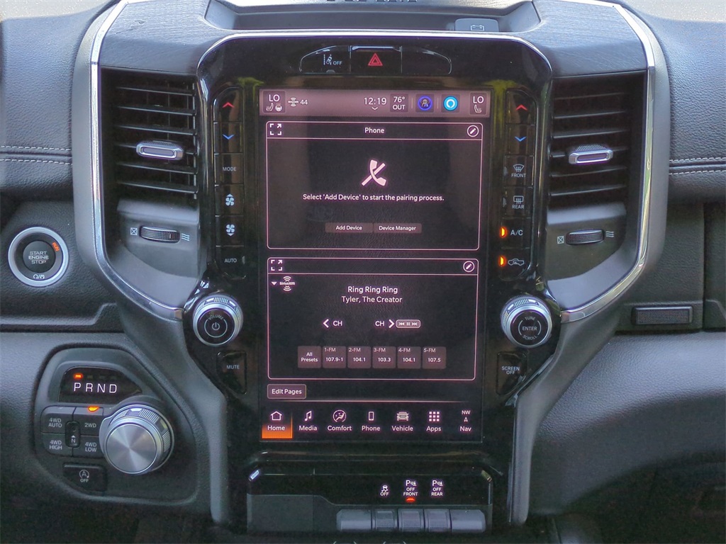 Bright White Clearcoat 2025 Ram 1500 Laramie 4WD Laramie 12" LCD Productivity Touchscreen, Android Auto, Apple Carplay, Auto Emergency Braking, Auto LED Headlights, Backup Camera, Blind Spot Monitoring, Bluetooth w/ Audio Streaming, Cold Weather Package, Front Pedestrian Braking, Full Speed Auto Collision Warning Plus, Lane Keeping System, Leather Seats, LED Foglights, Memory Package, Parking Sensors, Power Mirror Package, Power Package, Preferred Equipment Package, Push Button Start, Rear Cross Traffic Alert, Remote Start, Reverse Brake Assist, Reverse Sensing, Safety Package, Tow Package, Trailer Package, 4D Crew Cab, 3.0L I6, 8-Speed Automatic, 4WD, 10 Speakers, 4 Way Front Headrests, 4-Wheel Disc Brakes, 4G LTE Wi-Fi Hot Spot, ABS brakes, Apple CarPlay/Android Auto, Auto High-beam Headlights, Auto Power-Folding Mirrors, Auto-dimming door mirrors, Auto-Dimming Exterior Driver Mirror, Auto-dimming Rear-View mirror, Automatic temperature control, Brake assist, Chrome Exterior Mirrors, Compass, Convex Wide-Angle Exterior Mirror Insert, Delay-off headlights, Driver Seat Memory, Electronic Stability Control, Exterior Mirrors Courtesy Lamps, Exterior Mirrors w/Heating Element, Exterior Mirrors w/Memory, Exterior Mirrors w/Supplemental Signals, Front Center Armrest w/Storage, Front fog lights, Front wheel independent suspension, Fully automatic headlights, Garage door transmitter, GPS Antenna Input, GPS Navigation, HD Radio, Heated door mirrors, Heated Steering Wheel, Illuminated entry, Integrated Voice Command w/Bluetooth, Laramie Level 1 Equipment Group, Leather steering wheel, Leather Trim 40/20/40 Bench Seat, Low tire pressure warning, Memory seat, Navigation System, Outside temperature display, Overhead console, Panic alarm, ParkView Rear Back-Up Camera, Power Adjust 8-Way Front Passenger Seat, Power door mirrors, Power passenger seat, Quick Order Package 21H Laramie, Radio data system, Radio: Uconnect 5 Nav w/12.0" Display, Rain Sensitive Windshield Wipers, Rear seat center armrest, Rear step bumper, Remote keyless entry, Remote Tailgate Release, Security system, SiriusXM w/360L, Speed control, Split folding rear seat, Steering wheel mounted audio controls, Telescoping steering wheel, Tilt steering wheel, Traction control, Trip computer, Turn signal indicator mirrors, USB Host Flip, Ventilated Front Seats, Wheels: 20" x 9" Premium Paint/Polish.